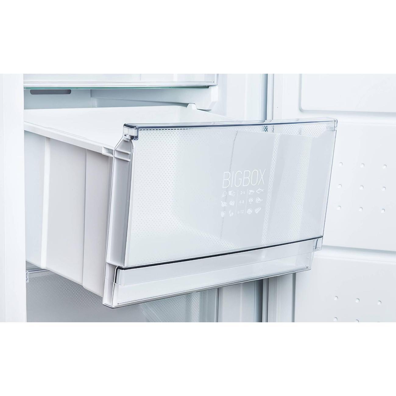 Нижняя секция из ударопрочного пластика вмещает до 10 кг крупных продуктов или целых тушек птицы. Прозрачный фасад ящика обеспечивает видимость припасов без необходимости выдвижения лотка наружу.