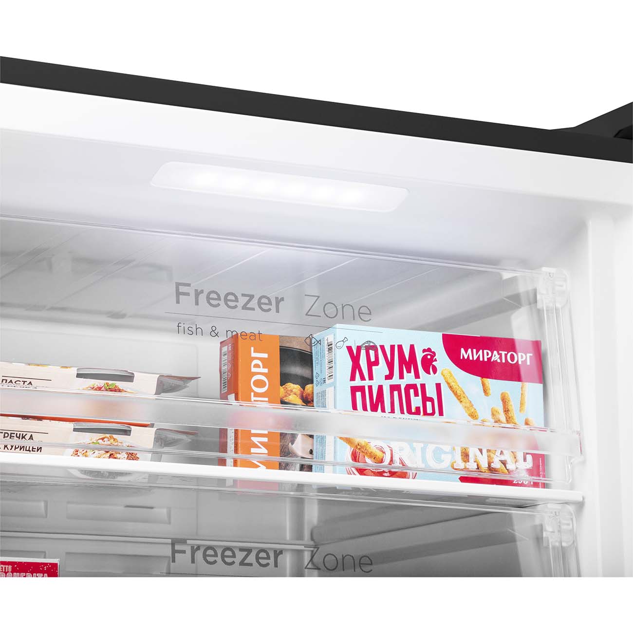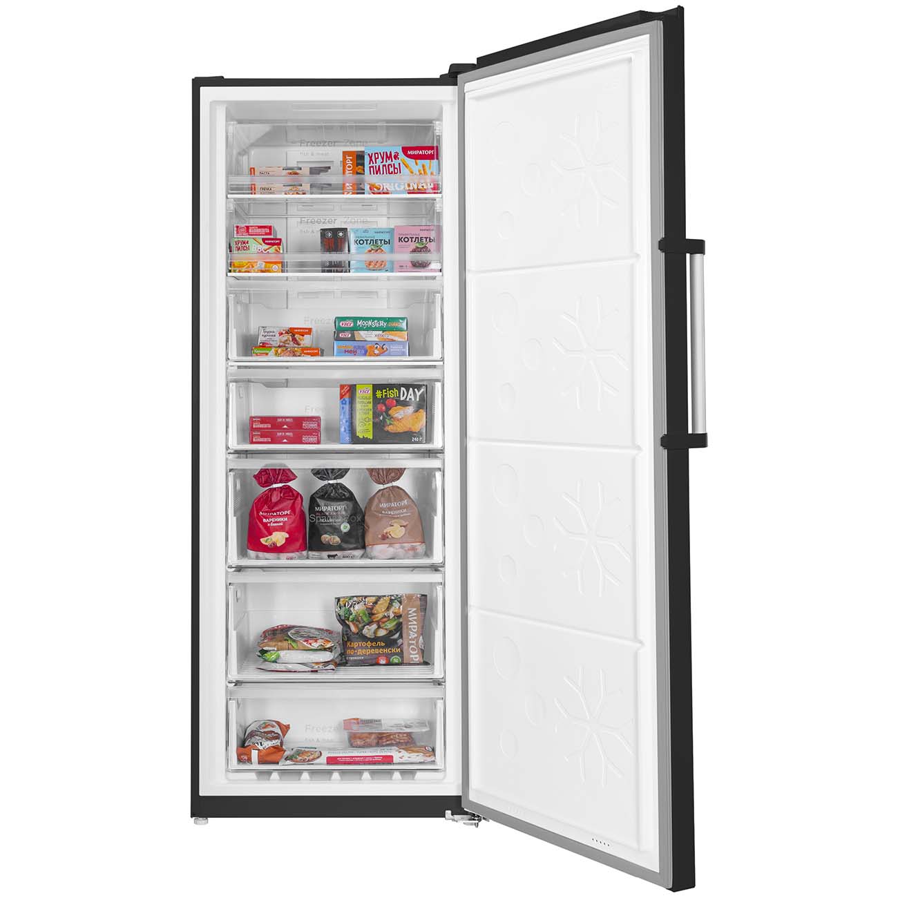 Морозильная камера Maunfeld MFFR185SB – это внушительный объём 380 л, надёжный инверторный компрессор, удобное электронное управление и экономичность – этой модели присвоен класс энергоэффективности А++. Она будет полезна для большой семьи, где закупают продукты сразу на несколько недель и делают масштабные сезонные заготовки.
