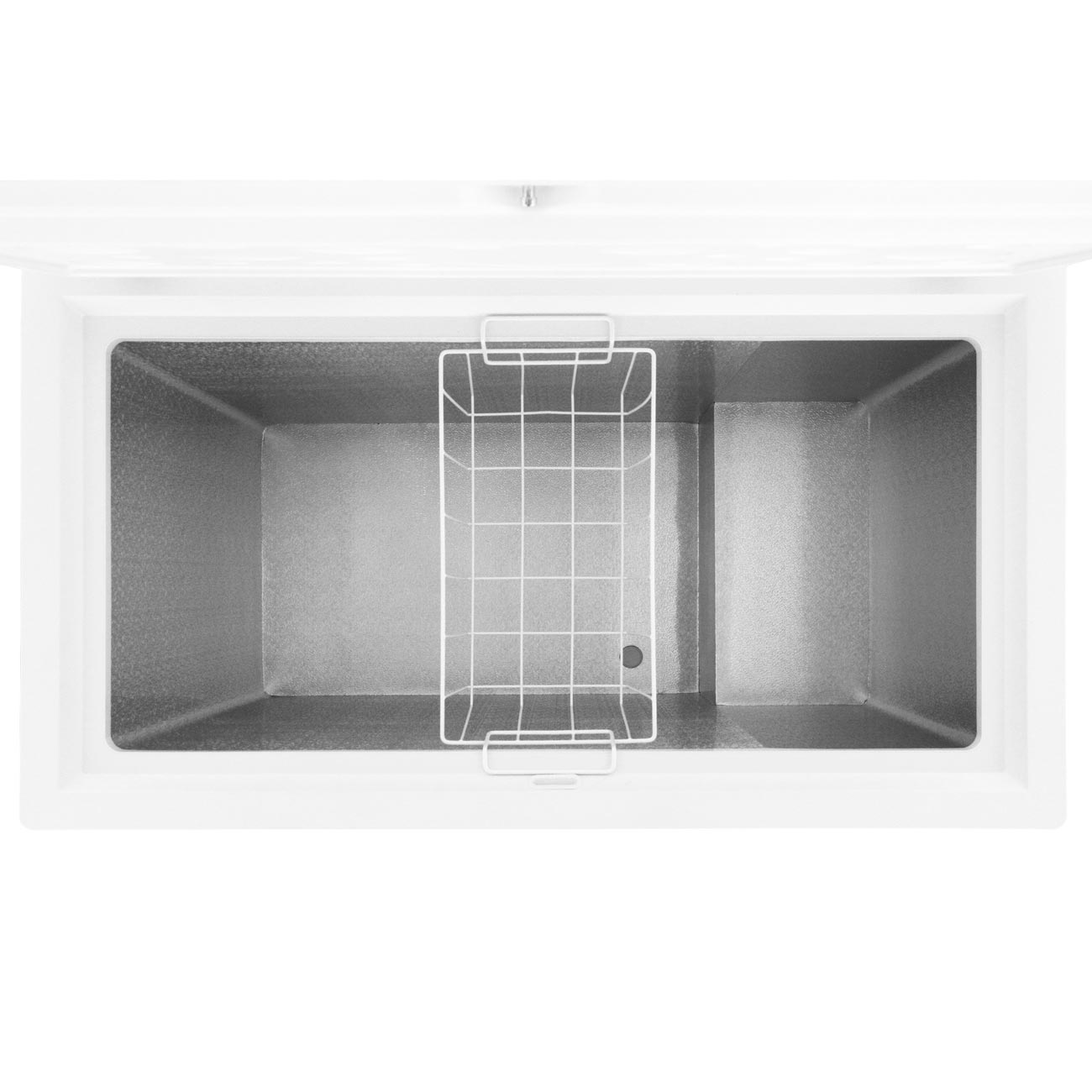 Внутри устройства – один отсек, но также предусмотрена съёмная подвесная корзина для хранения небольших коробок с полуфабрикатами, ягод или мороженого. Корпус ларя покрыт прочным пластиком, с которого легко удаляются любые пятна.
