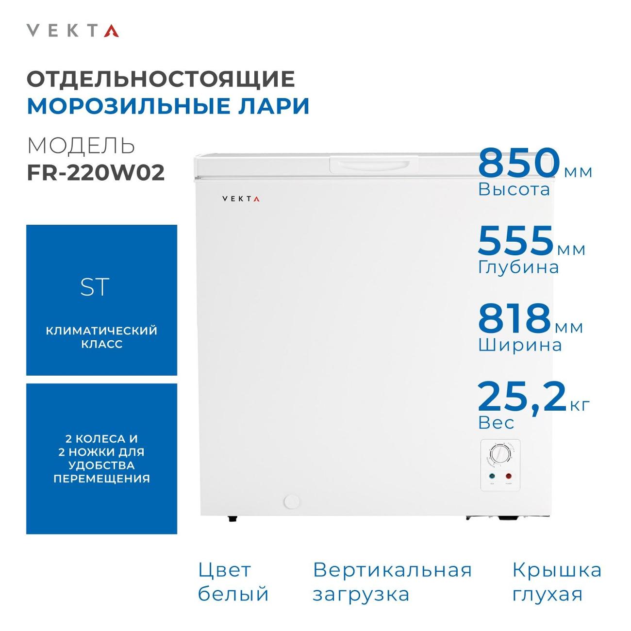 Вы можете купить Морозильный ларь Vekta FR-220W02 в магазинах М.Видео по доступной цене. Морозильный ларь Vekta FR-220W02: подробное описание, фото и отзывы реальных покупателей, характеристики, возможность скачать инструкции и подобрать аксессуары.