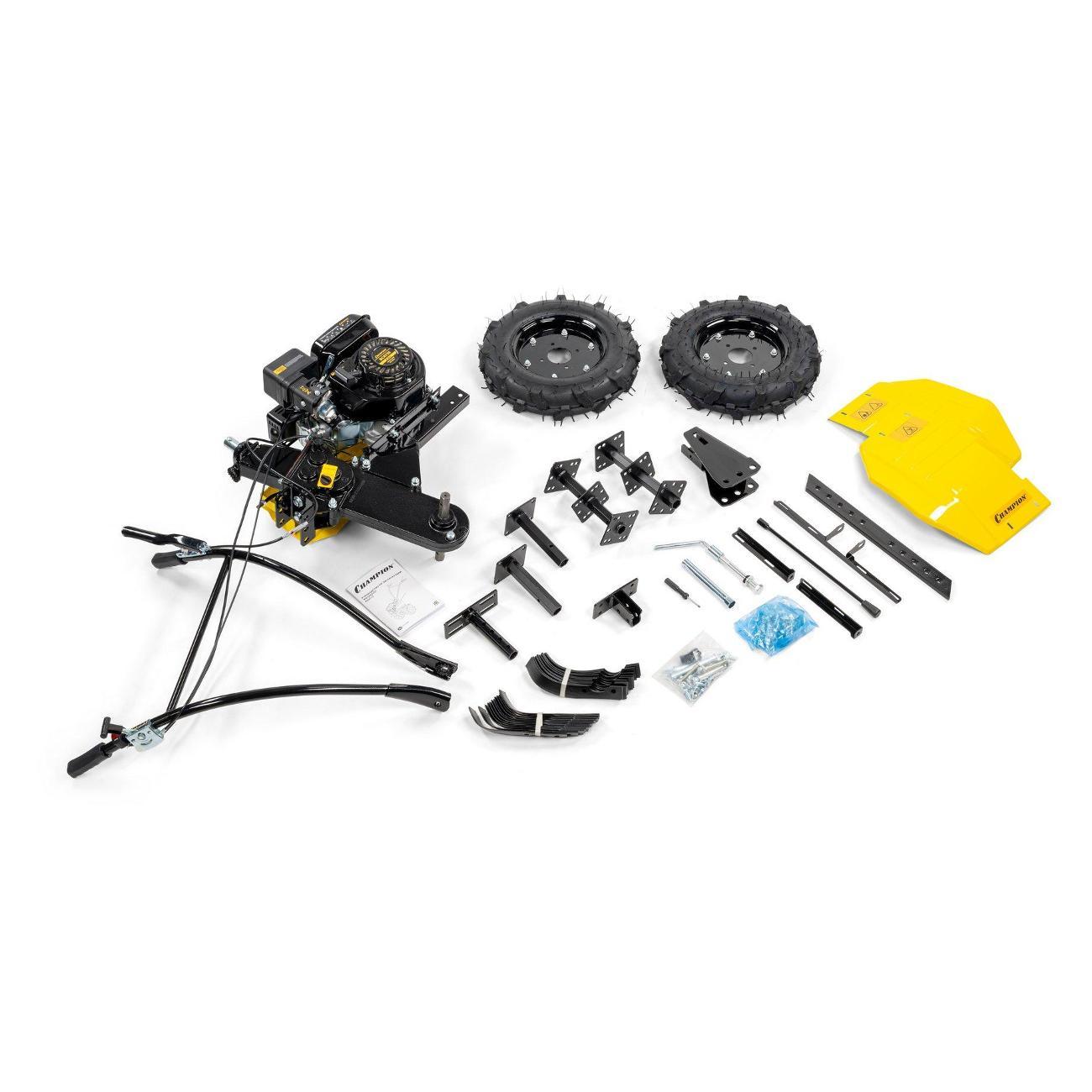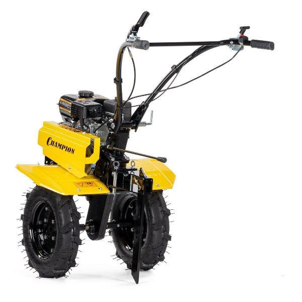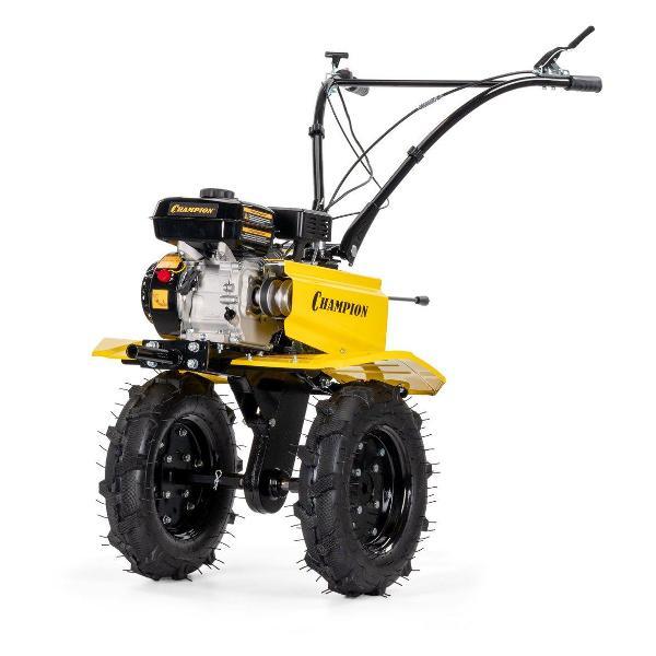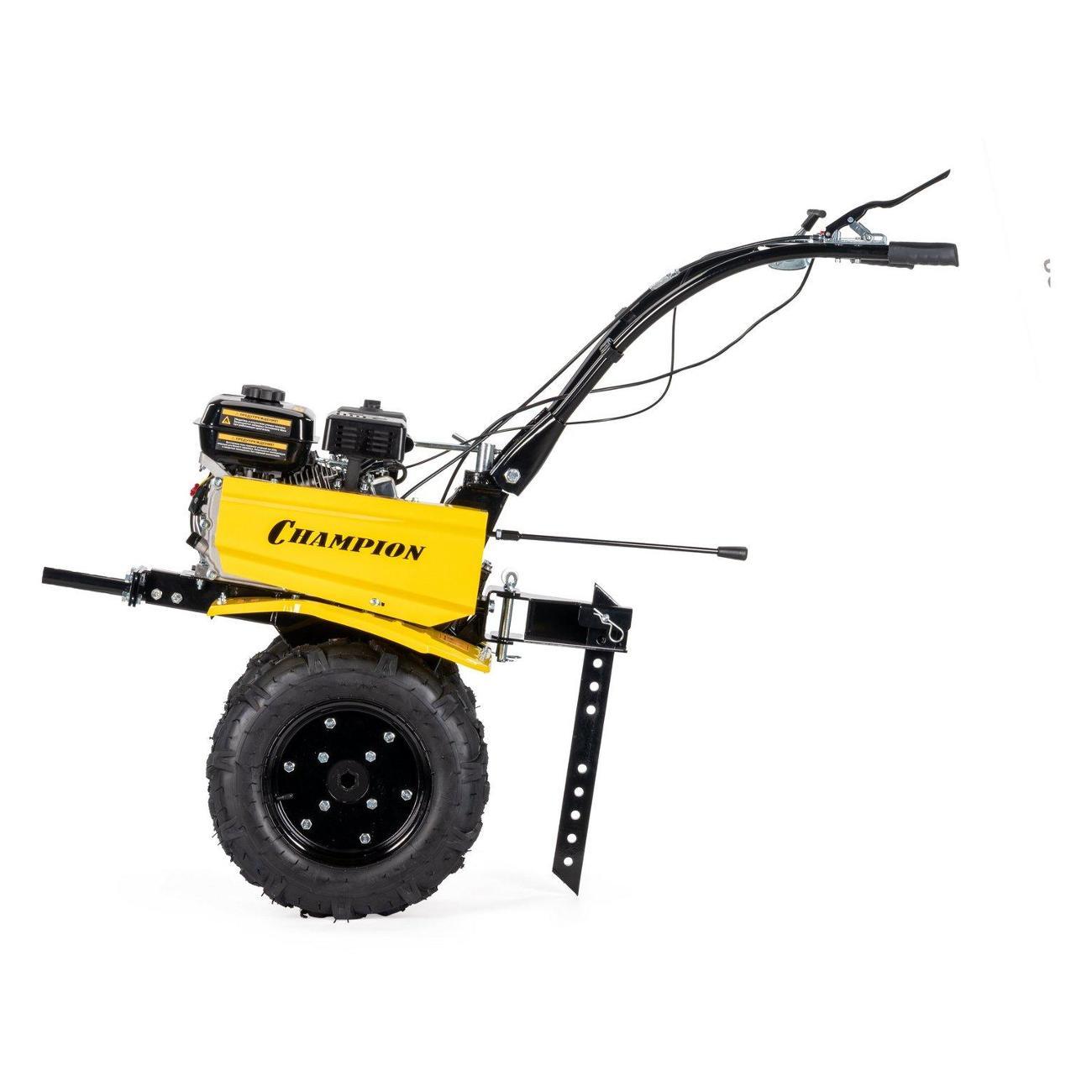 Мотоблок CHAMPION BC8733 представляет собой надежное и мощное устройство, предназначенное для обработки больших участков земли. Оснащенный бензиновым двигателем G210-26HK мощностью 7 лошадиных сил, он обеспечивает эффективную работу на площади более 20 соток. Шестеренчато-цепной редуктор и ременное сцепление гарантируют плавность и надежность в эксплуатации. Ширина вспашки достигает 81 см, а глубина - 35 см, что позволяет быстро и качественно обрабатывать почву. Две скорости вперед и одна назад обеспечивают удобство маневрирования. С колесами диаметром 4.00-10 см мотоблок легко преодолевает неровности. Емкость топливного бака составляет 3,6 литра, что позволяет работать длительное время без дозаправки.