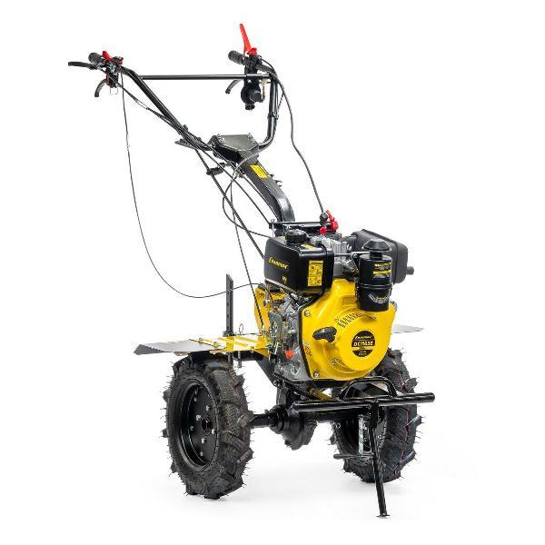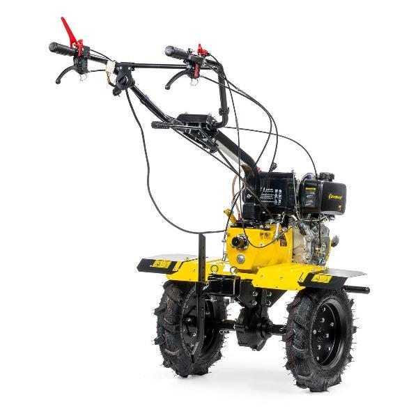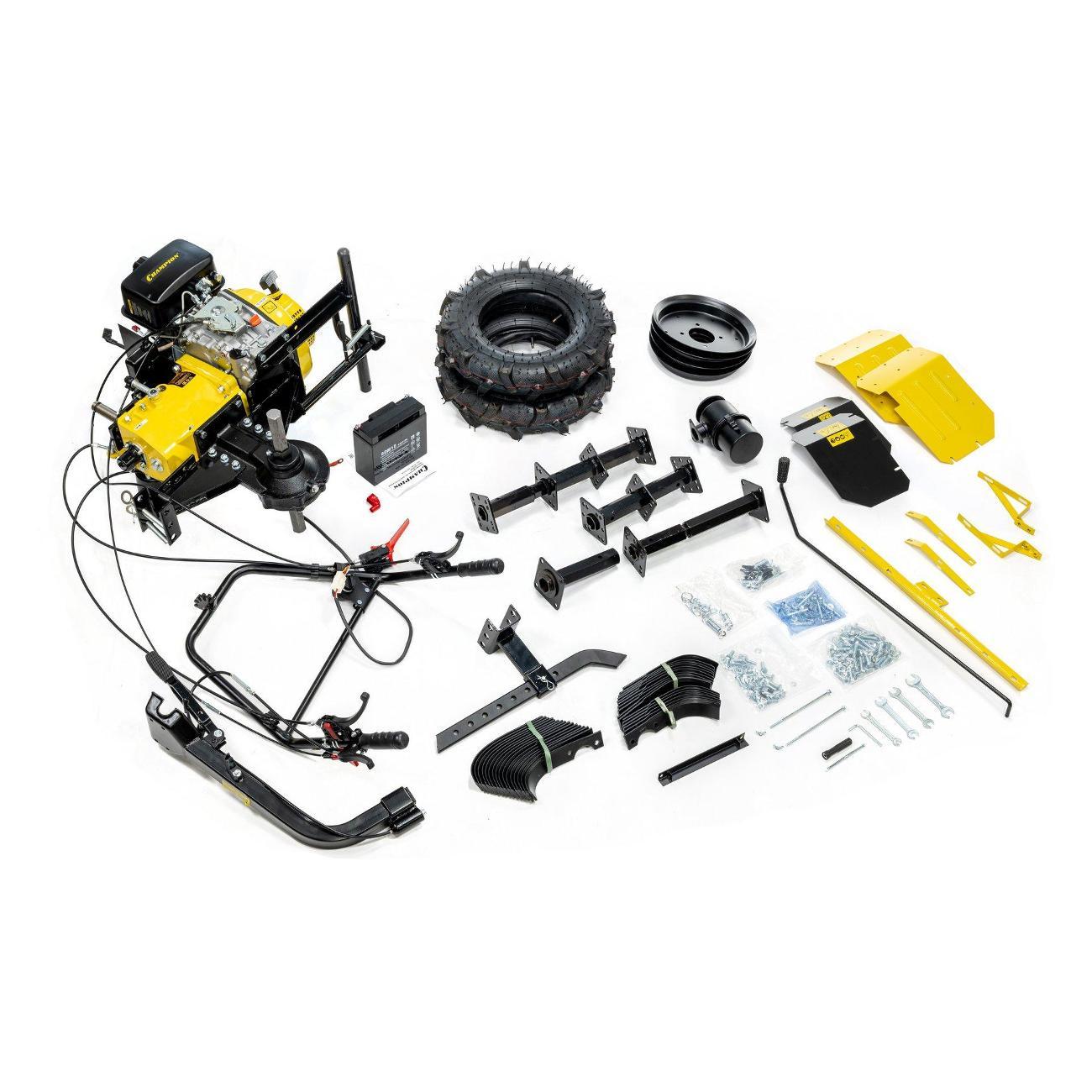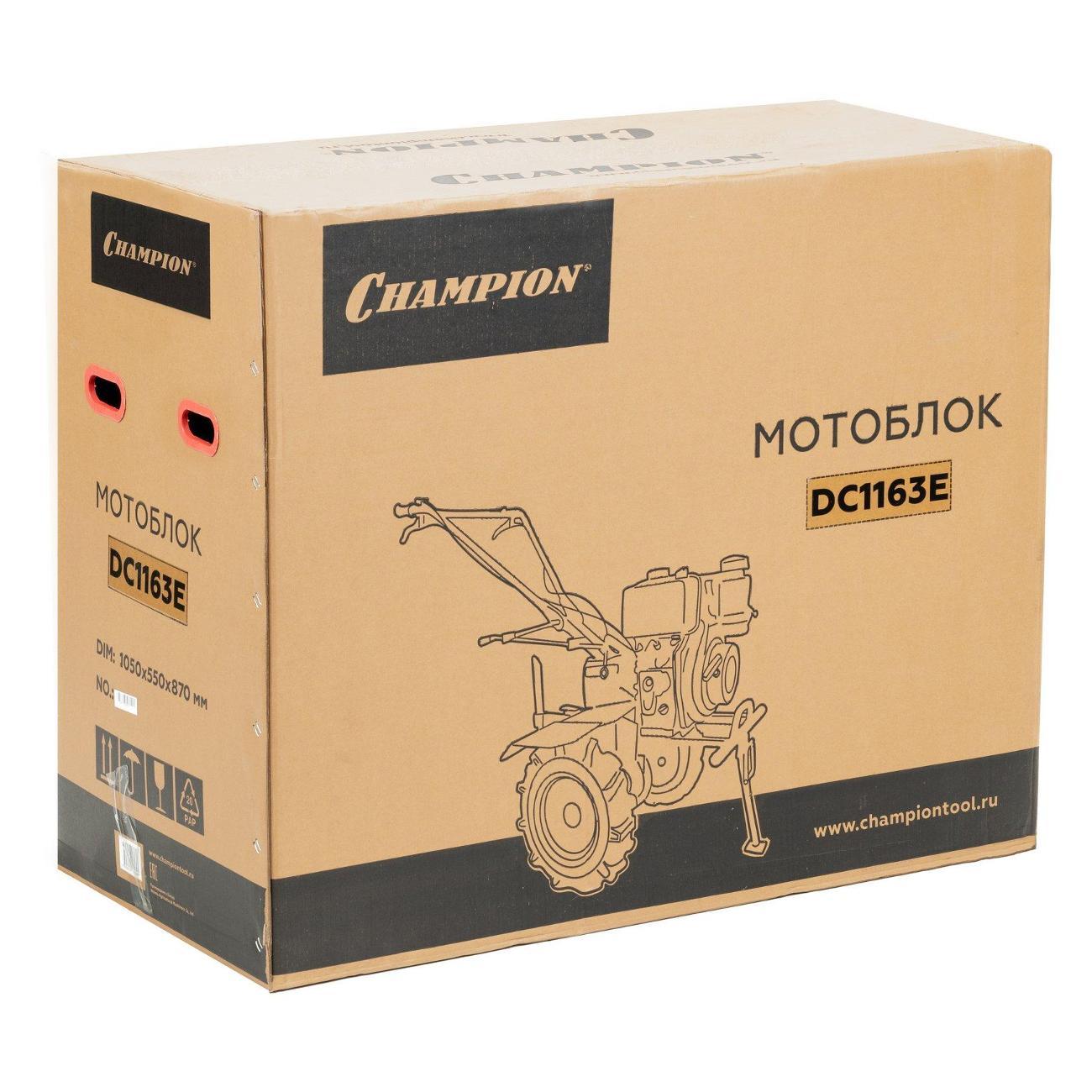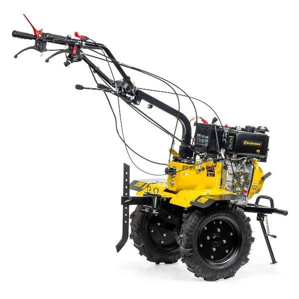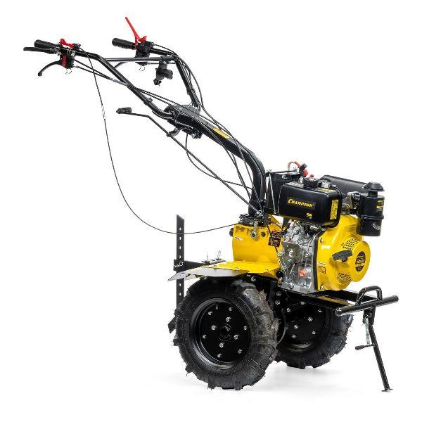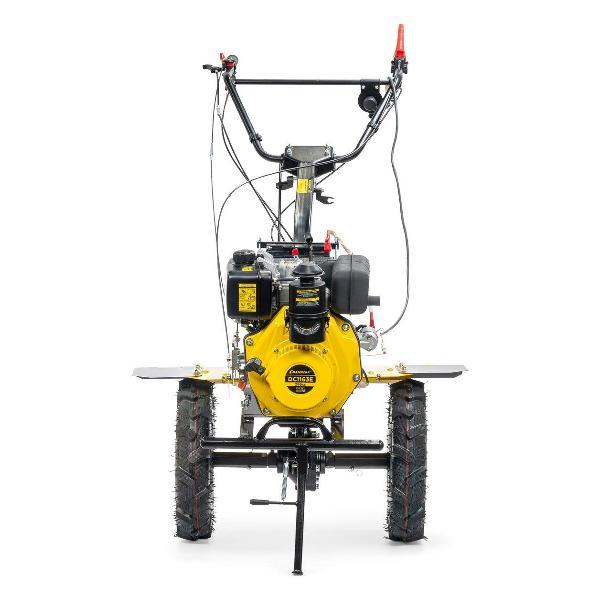 Мотоблок Champion DC1163E отличается эффективностью вспашки целинных земель. Может косить сено, собирать урожай, качать воду с помощью навесного оборудования. Оснащен экономичным дизельным двигателем Champion D300-1HK. Ширина захвата составляет 80-110 см. Элементы управления расположены на рукоятке. Благодаря большим колеса, агрегат с легкостью преодолевает любые неровности почвы. В передней части мотоблока расположена откидная стояночная опора.