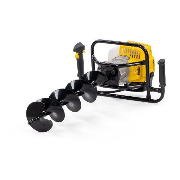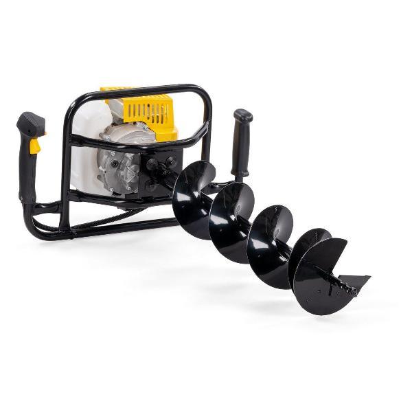 Оснащен двигателем объемом 51.6 куб.см и мощностью 1.46 кВт, который обеспечивает до 8500 об/мин, и способен работать шнеками диаметром до 250 мм (по почве) и до 200 мм (по льду).