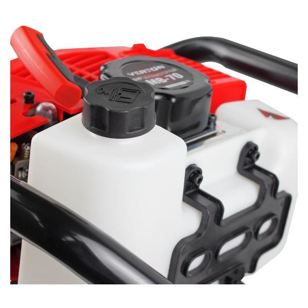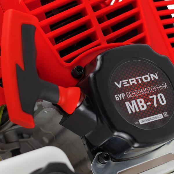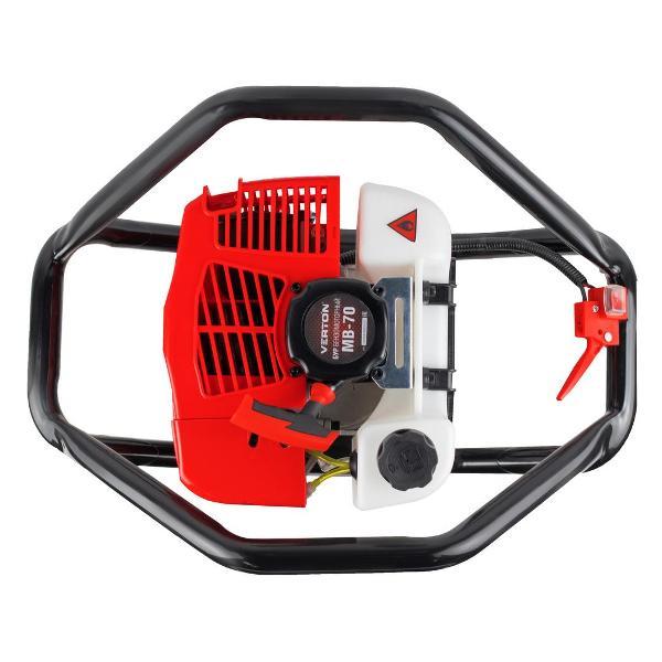 Мотобур Verton МВ-70 подходит для бурения почвы и льда. В процессе работы требуется участие двух операторов. Диаметр посадки для бура должен составлять 20 мм. В конструкции предусмотрены прорезиненные рукоятки, которые обеспечивают надежный хват и исключают соскальзывание ладоней.