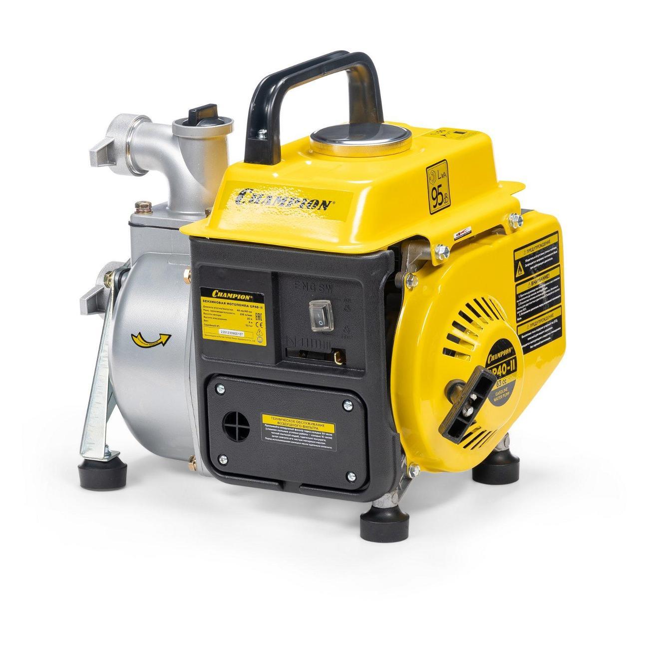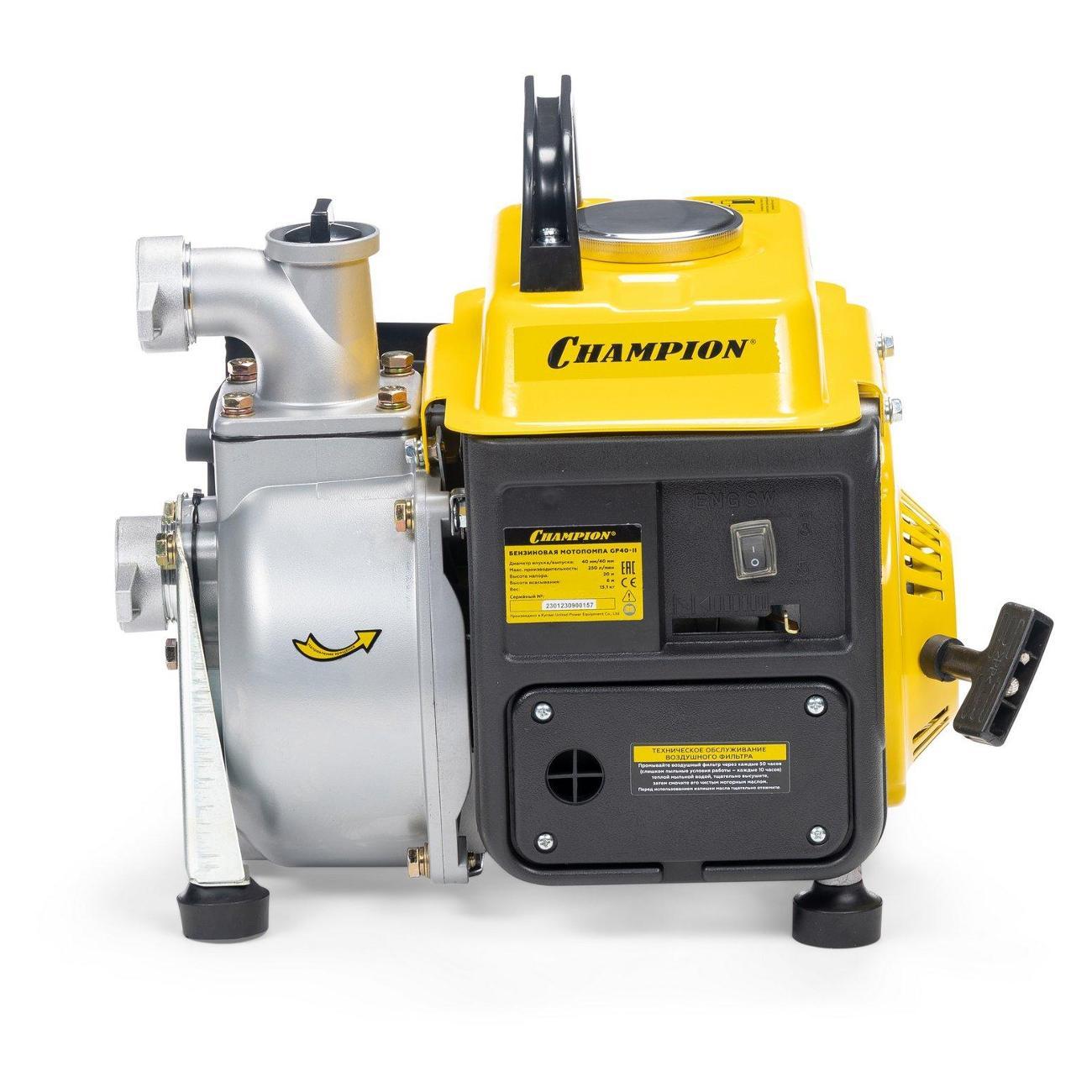 Вы можете купить Мотопомпа Champion GP40-II Yellow в магазинах М.Видео по доступной цене. Мотопомпа Champion GP40-II Yellow: подробное описание, фото и отзывы реальных покупателей, характеристики, возможность скачать инструкции и подобрать аксессуары.