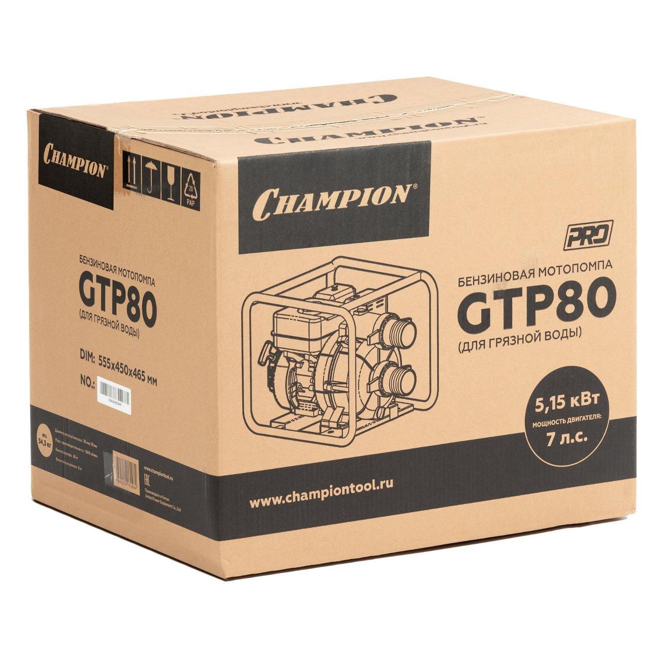 Вы можете купить Мотопомпа Champion GTP80 в магазинах М.Видео по доступной цене. Мотопомпа Champion GTP80: подробное описание, фото и отзывы реальных покупателей, характеристики, возможность скачать инструкции и подобрать аксессуары.