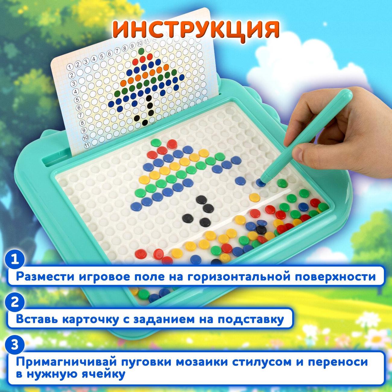 Магнитная мозаика подходит для развития воображения и мелкой моторики. Яркие детали заинтересуют детей, пробудят их фантазию и подарят массу приятных впечатлений.