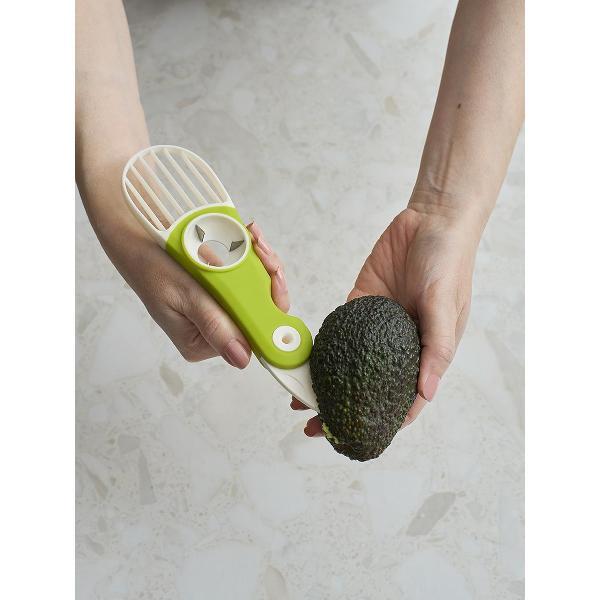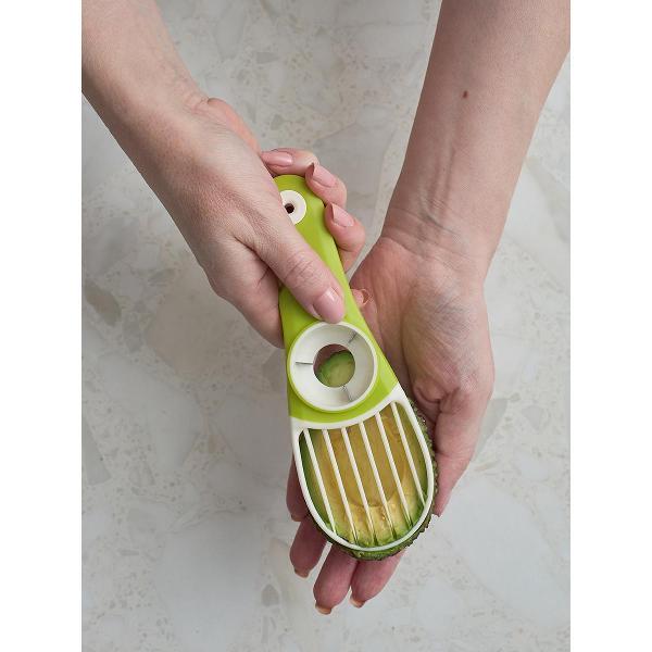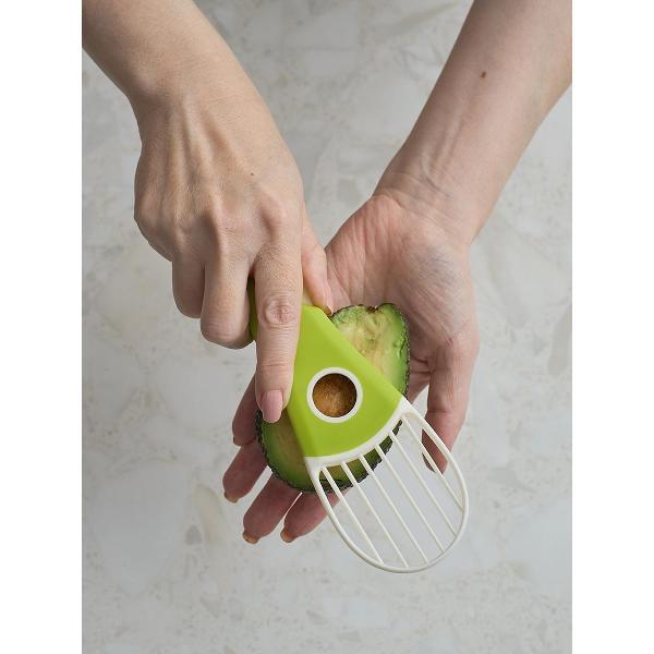 С этим складным ножом у вас не будет сложностей с обработкой авокадо. Многофункциональный прибор 3 в 1 поможет быстро извлечь косточку, очистить фрукт от кожуры и одним движением нарезать его ровными ломтиками.