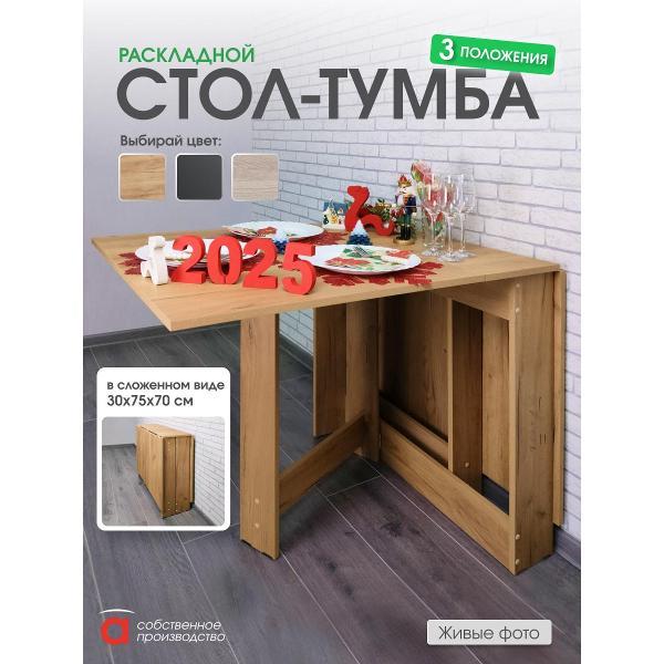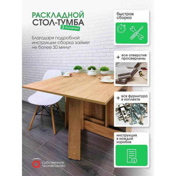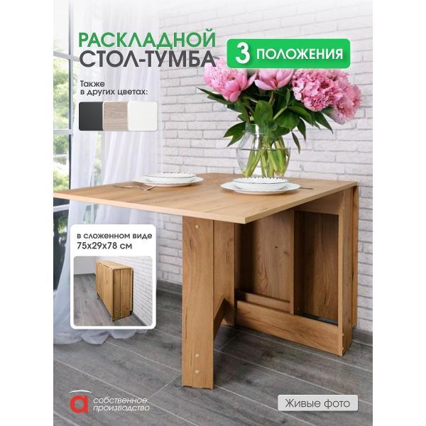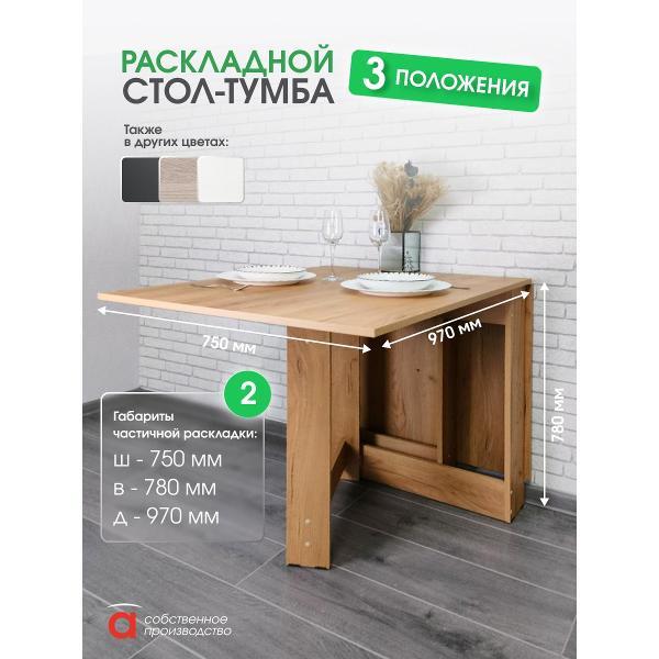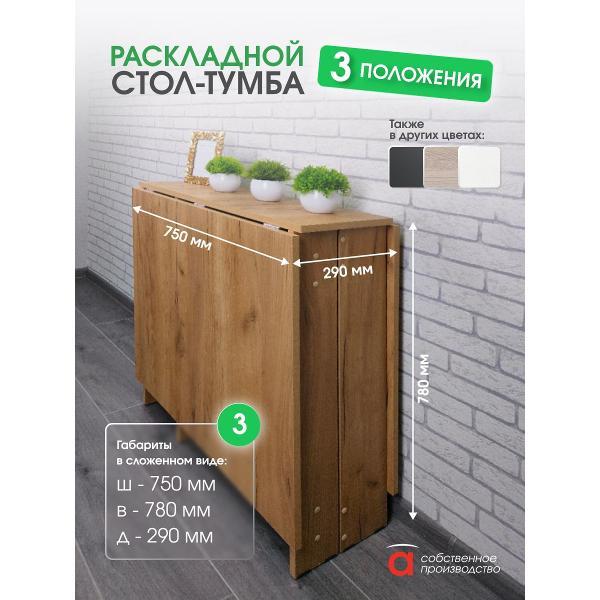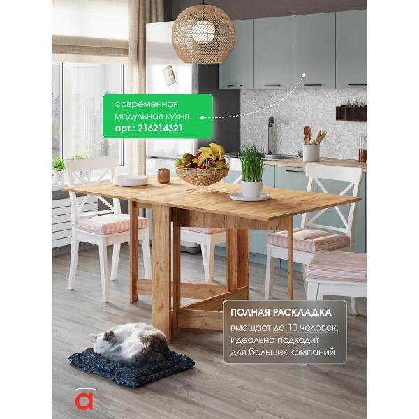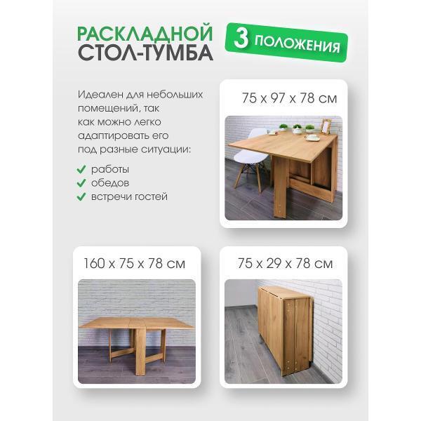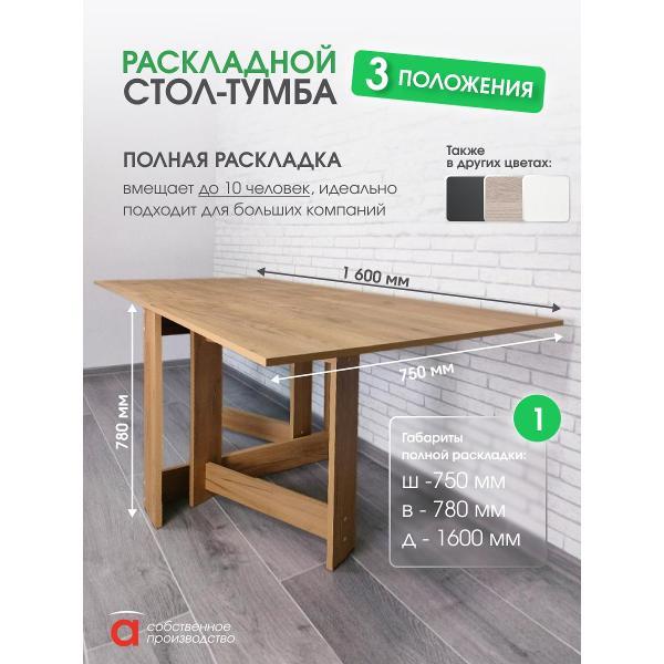 В разложенном виде габариты стола составляют 1600*750*780 мм, а в сложенном — всего 29*75*78 мм. Это позволяет разместить его в углу кухни или приставить к стене, освобождая пространство для других нужд. Подходит как для больших, так и для маленьких кухонь, для тех кому важно иметь легкий стол, максимально сохранив размеры столешницы. Его можно использовать не только в кухне, но и в гостиной, детской комнате или даже на даче, создавая уютную обеденную зону или место для работы и учебы.