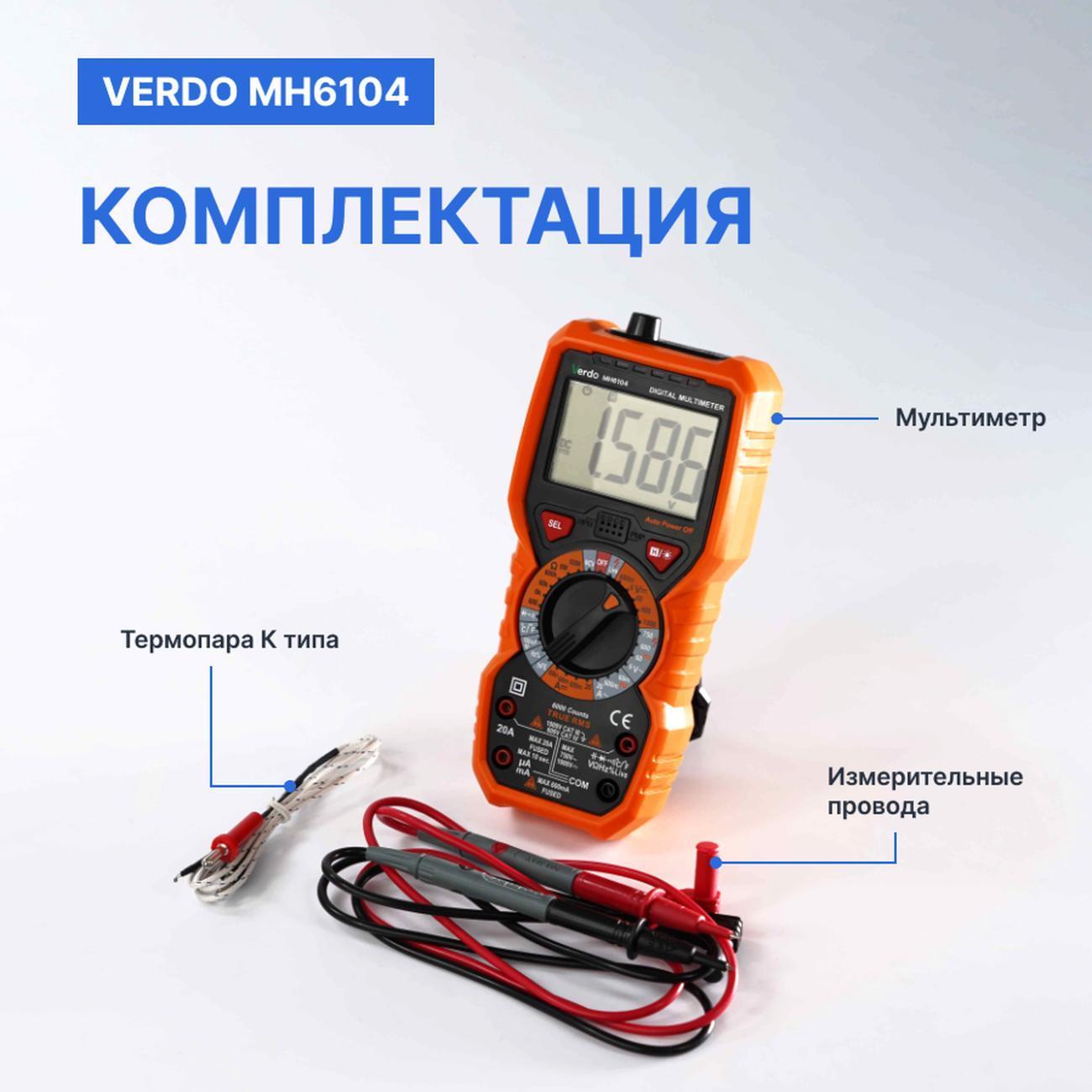 Вы можете купить Мультиметр VERDO MH6104 портативный 0,5%, 6000 отсчетов с поверкой в магазинах М.Видео по доступной цене. Мультиметр VERDO MH6104 портативный 0,5%, 6000 отсчетов с поверкой: подробное описание, фото и отзывы реальных покупателей, характеристики, возможность скачать инструкции и подобрать аксессуары.