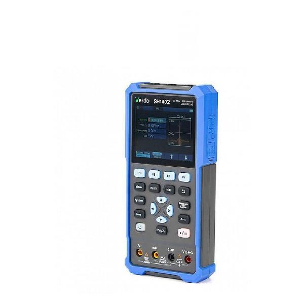 VERDO SH1402 - это портативный ручной осциллограф, который сочетает в себе функции двухканального цифрового осциллографа с полосой пропускания до 40 МГц и 4½-разрядного TrueRMS мультиметра и генератора сигналов специальной формы.
