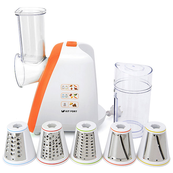 Электрическая мультирезка Kitfort КТ-1318-2 упрощает процесс готовки и помогает сэкономить время. Это компактное устройство, которое легко собирается и уверенно стоит на столе благодаря прорезиненным ножкам.