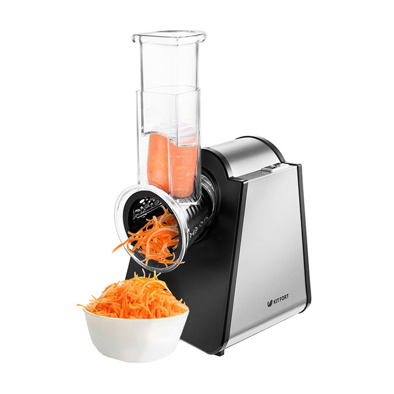 Мультирезка Kitfort КТ-1351 – это удобное приспособление, которое сделает процесс приготовления пищи быстрым и лёгким. Управление происходит с помощью одной кнопки, а все съёмные элементы без лишних усилий присоединяются к корпусу.