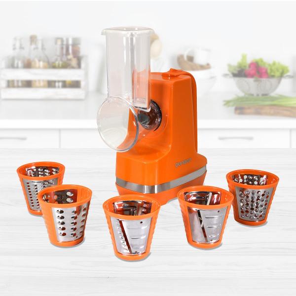 Мультирезка Oursson MS2050/OR отличается компактностью, поэтому не займет много места на кухне. Многофункциональная модель позволяет шинковать, измельчать и нарезать овощи, фрукты, сыр, готовить пюре и добавлять в блюда тертый чеснок, имбирь или шоколад. Благодаря мощности 150 Вт прибор быстро и эффективно обработает продукты. Ножи выполнены из нержавеющей стали, за счет чего устойчивы к коррозии, механическим воздействиям, деформации и износу. Качественно заточенные насадки не скоро затупятся.