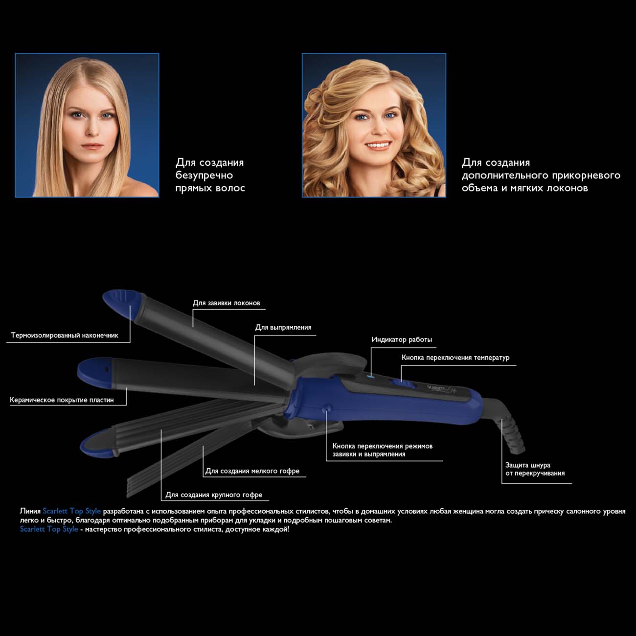 Забежала наспех в магазин, срочно нужно было вытянуть волосы, и по деньгам была ограничена.Вобщем выбор пал на данную безделушку,даже язык не поворачивается назвать это "мультистайлером".И как результат, я живое подтверждение пословицы: "Скупой платит дважды".Вообщем абсолютно бесполезная вещица, качество материалов просто смешное,все хлипкое и дешевое(хотя чего я ожидала за такие деньги)Волосы не выпрямляет совершенно,это несмотря на то что мои волосы не кудрявые, а слегка пушатся.То есть соответственно о температуре нагрева даже говорить не стоит, температуры не достаточно даже для устранения пушистости,не говоря уже о тотальном выпрямлении.Ну и о гофре естественно тоже самое могу сказать, температуры нагрева не хватает для качественного гофре, распрямляется все через 5 минут. Категорически не советую данный товар!!! ЛУЧШЕ приобрести щипцы надлежащего качества!