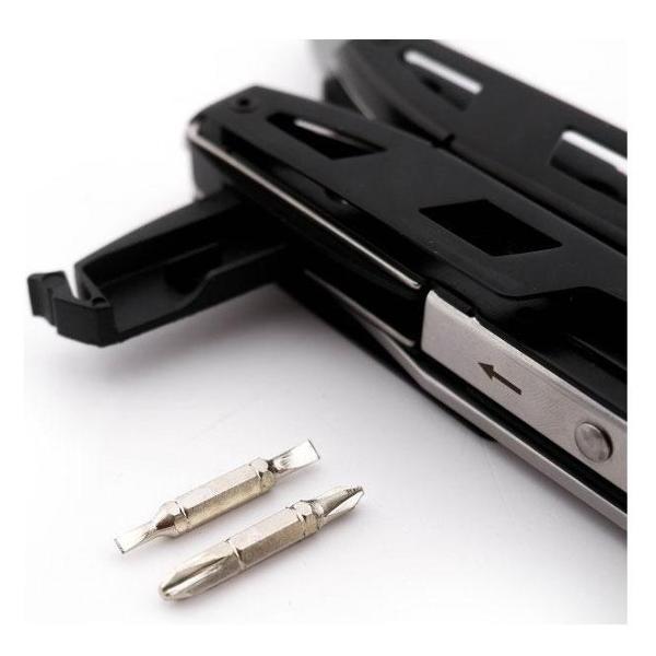 Мультитул Huohou H1 Multi-Tools HU0131 весом 344 г обладает пластиковой рукояткой черного цвета. Длина лезвия — 8 см. Встроено 19 предметов, среди них: нож, стропорез, стеклобой, линейка, шестигранник, плоская отвертка, гнездо для бит, напильник, стриппер, стопор, плоскогубцы, зубчатая выемка, кусачки и другие. Многофункциональные инструменты выполнены из стали, устойчивой к коррозии.