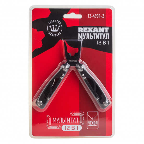 Мультитул Rexant 12-4901-2 длиной 120 мм в открытом состоянии выполняет 12 функций.