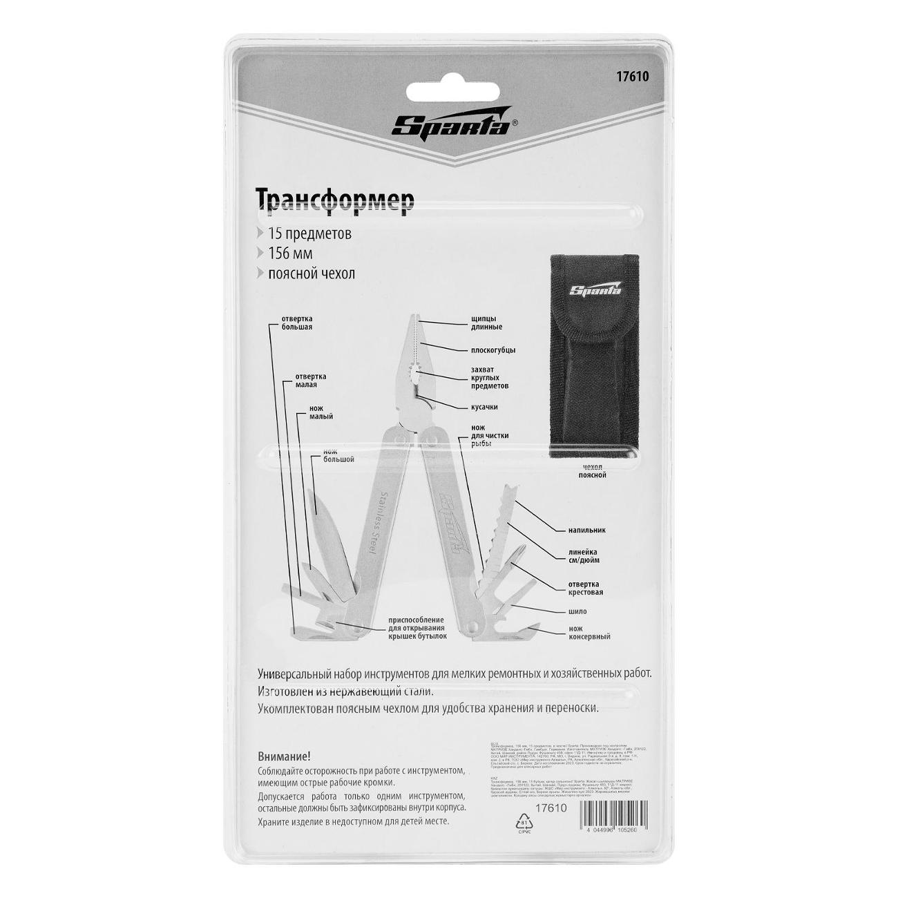 Вы можете купить Мультитул Sparta 17610 в магазинах М.Видео по доступной цене. Мультитул Sparta 17610: подробное описание, фото и отзывы реальных покупателей, характеристики, возможность скачать инструкции и подобрать аксессуары.