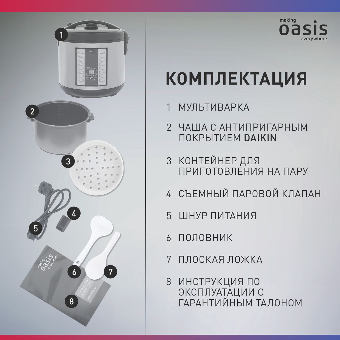 Вы можете купить Мультиварка Oasis MC-16P в магазинах М.Видео по доступной цене. Мультиварка Oasis MC-16P: подробное описание, фото и отзывы реальных покупателей, характеристики, возможность скачать инструкции и подобрать аксессуары.