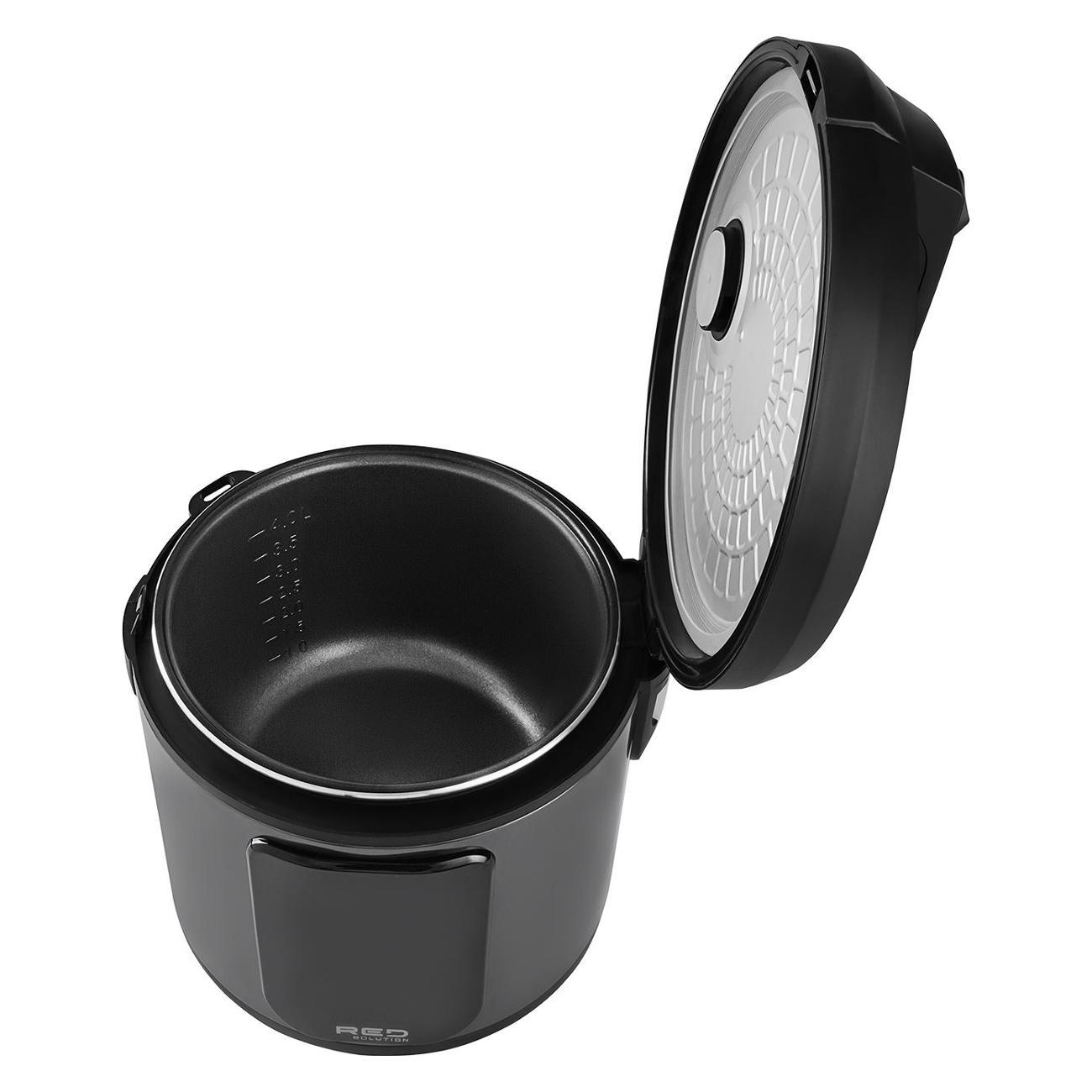Сама мультиварка имеет небольшой размер. Имеет 34 автоматических программ и до 145 можно внести самостоятельно. Объем чаши 5 л, внутри есть мерные отметки. Чаша выполнена из антипригарного покрытия.