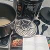 Из минусов - на мой взгляд, лучше бы пароварка была пластиковой чашей, потому что пароварка начинает "крутиться", когда достаёшь еду, и своими металлическими ножками "ездит" по антипригарному покрытию, вот тут прям как по сердцу ножом🥺
