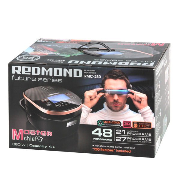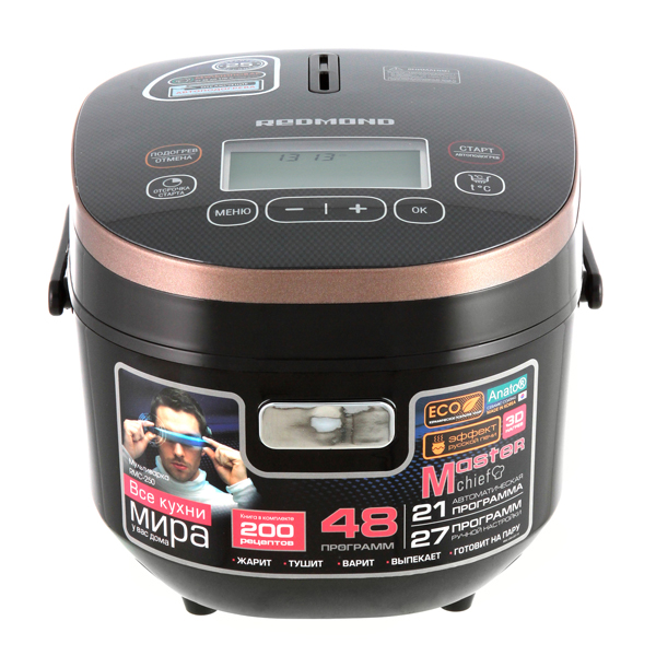 Важнейшей особенностью мультиварки REDMOND RMC-250 является специальная функция -Мастер-шеф-, которая позволяет создавать оригинальные программы приготовления, запоминая ваши новые настройки, чтобы вы могли их воспроизвести, когда это необходимо.