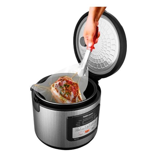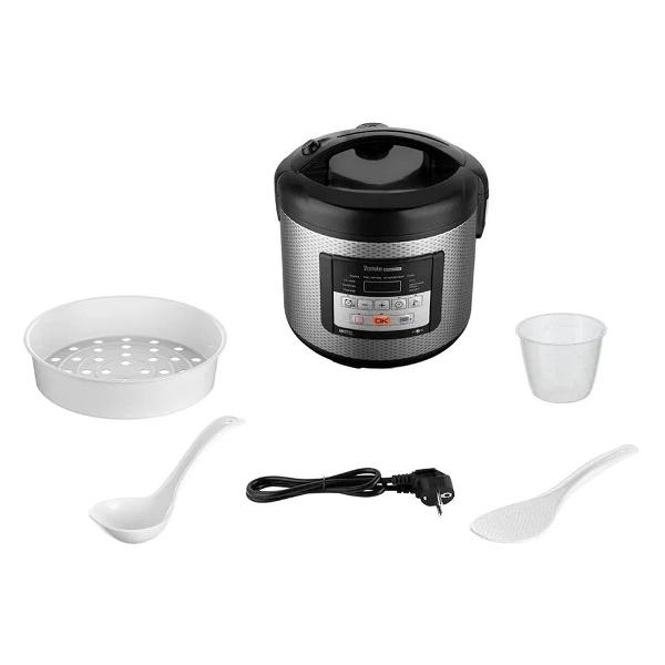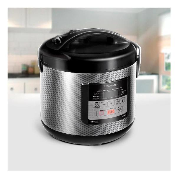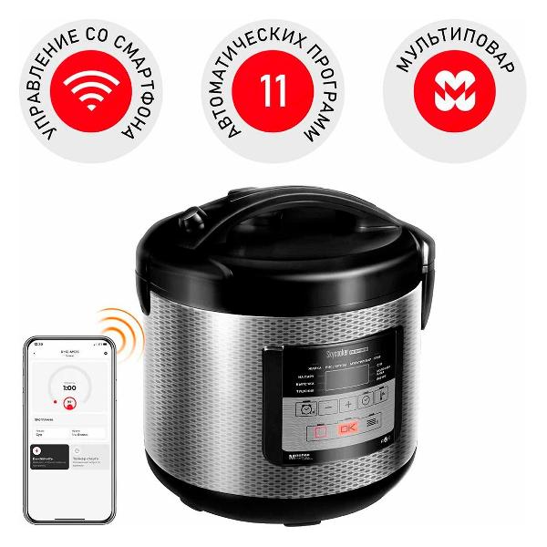 Управлять прибором можно электронно или с помощью приложения на смартфоне. Встроены таймер отложенного старта до 24 ч и звуковой сигнал. Габариты модели — 29х28,5х26,5 см. В комплект включены книга с рецептами, контейнер-пароварка, лопатка, мерный стакан, столовая ложка для супа, щипцы извлечения чаши. Цифровой дисплей сообщает о времени приготовления, выбранном режиме и включении. Мощность — 860 Вт. Вес — 2,5 кг.