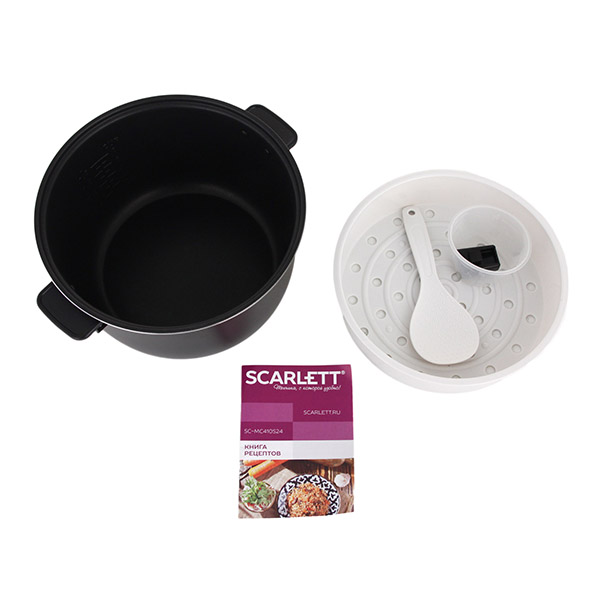 Мультиварка Scarlett SC-MC410S24 поможет приготовить вкусную и полезную еду даже тем, у кого нет большого кулинарного опыта. Ей легко пользоваться, она оборудована вместительной чашей с двухслойным антипригарным покрытием и ненагревающимися ручками.