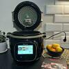 Безопасность при использовании давления обеспечивается системой блокировки крышки, о чем предупреждает соответствующий индикатор. Сброс производится автоматически. Для удобства переноса корпус оснащен ручками. Для расширения возможностей мультиварки можно дополнительно приобрести крышку-аэрогриль Extra Crisp Lid для запекания.