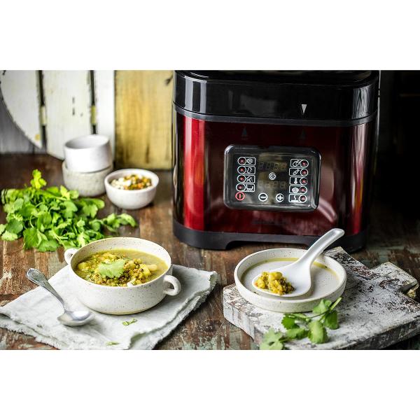 Мультиварка Steba DD 2 Basic Red в корпусе черно-красной расцветки оснащена функцией скороварки — блюда можно готовить под давлением. Объем чаши составляет 5 л. Предусмотрен отложенный старт (максимум — на 10 часов). Степень нагрева мультиварки можно регулировать. Присутствует функция поддержания заданной температуры.