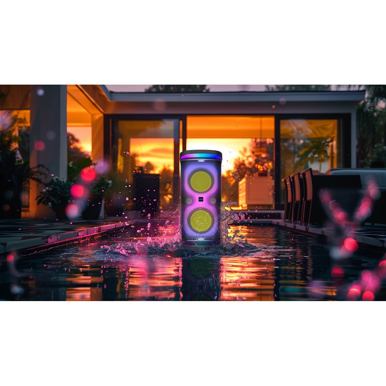Сабвуфер, подобно сердцебиению спящего древнего бога, издает глубокие и могучие басы, которые колеблются в диапазоне от самых низких до высоких частот, создавая звуковую пелену, способную вызвать трепет и благоговение. Подсветка корпуса не просто освещает; она словно открывает портал в другие измерения, где свет и тьма сливаются в одно целое, и каждая нота становится визуальным феноменом, вызывающим невольное восхищение или ужас.