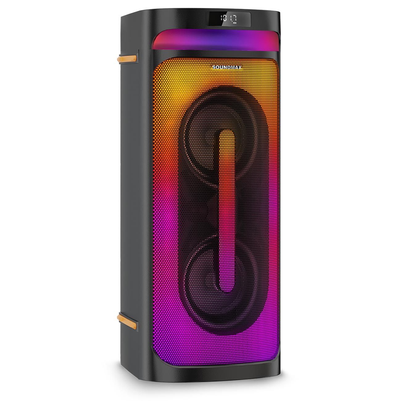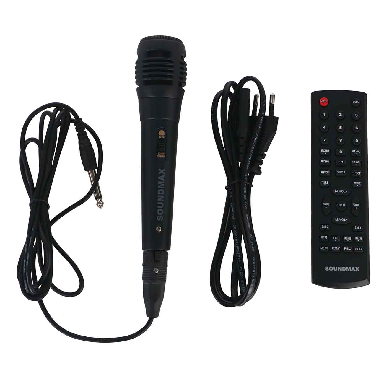 Музыкальная Midi-система Soundmax SM-MS4205 в черном корпусе способна воспроизводить медиафайлы с цифровых носителей. Также можно использовать колонку для караоке. В комплекте присутствует микрофон, громкость которого регулируется. После включения загорается LED-подсветка, которая пульсирует и переливается в такт музыке.