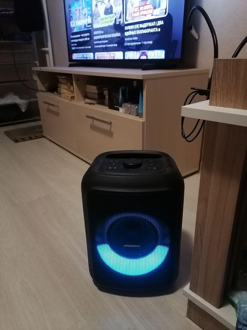 Аккуратный внешний вид, качественный звук для своих размеров, не кряхтит и не трещит, удобная ручка, есть включение баса отдельной кнопкой - но срабатывает со второго раза!