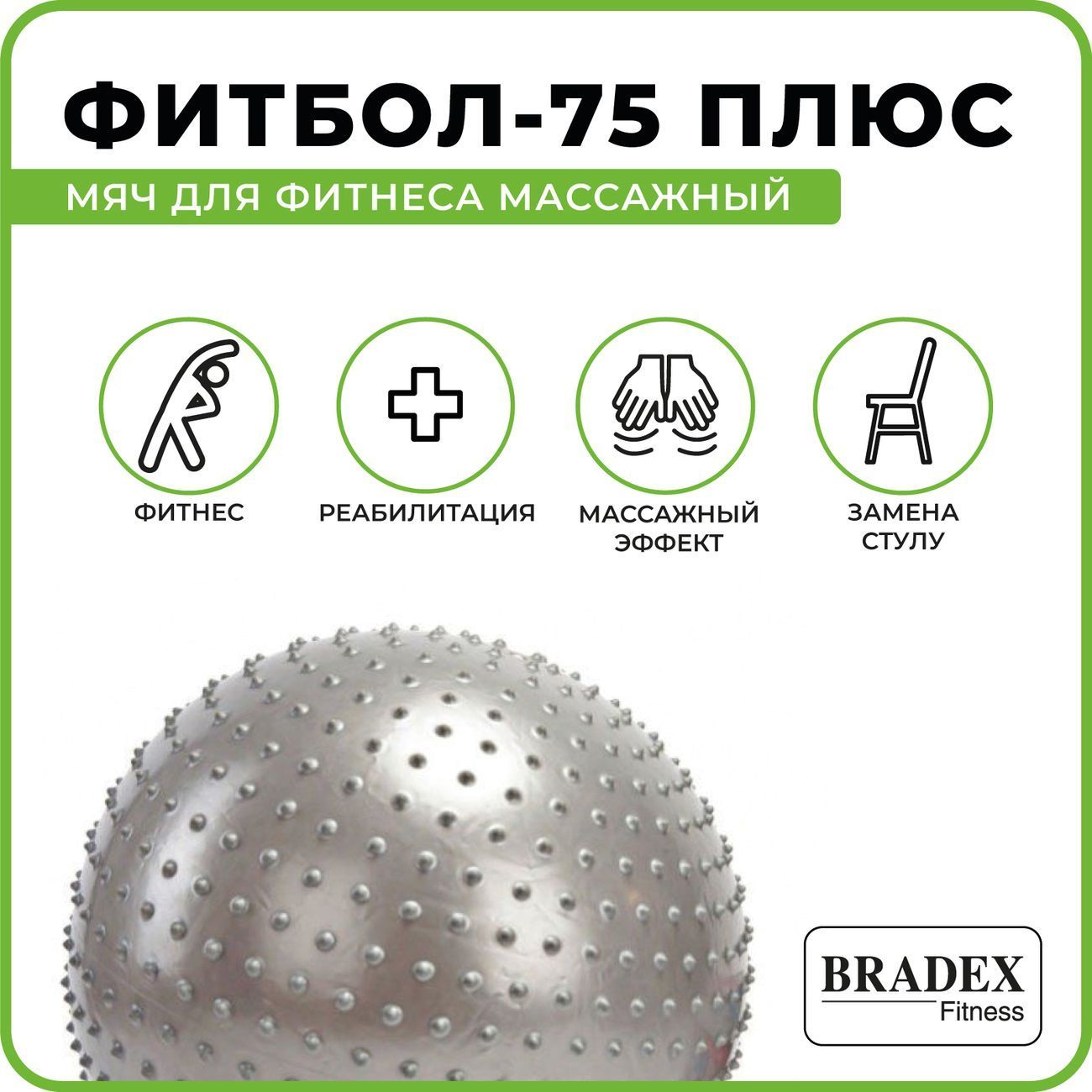 Вы можете купить Мяч для фитнеса Bradex SF 0018 Фитбол-75 Плюс, массажный в магазинах М.Видео по доступной цене. Мяч для фитнеса Bradex SF 0018 Фитбол-75 Плюс, массажный: подробное описание, фото и отзывы реальных покупателей, характеристики, возможность скачать инструкции и подобрать аксессуары.