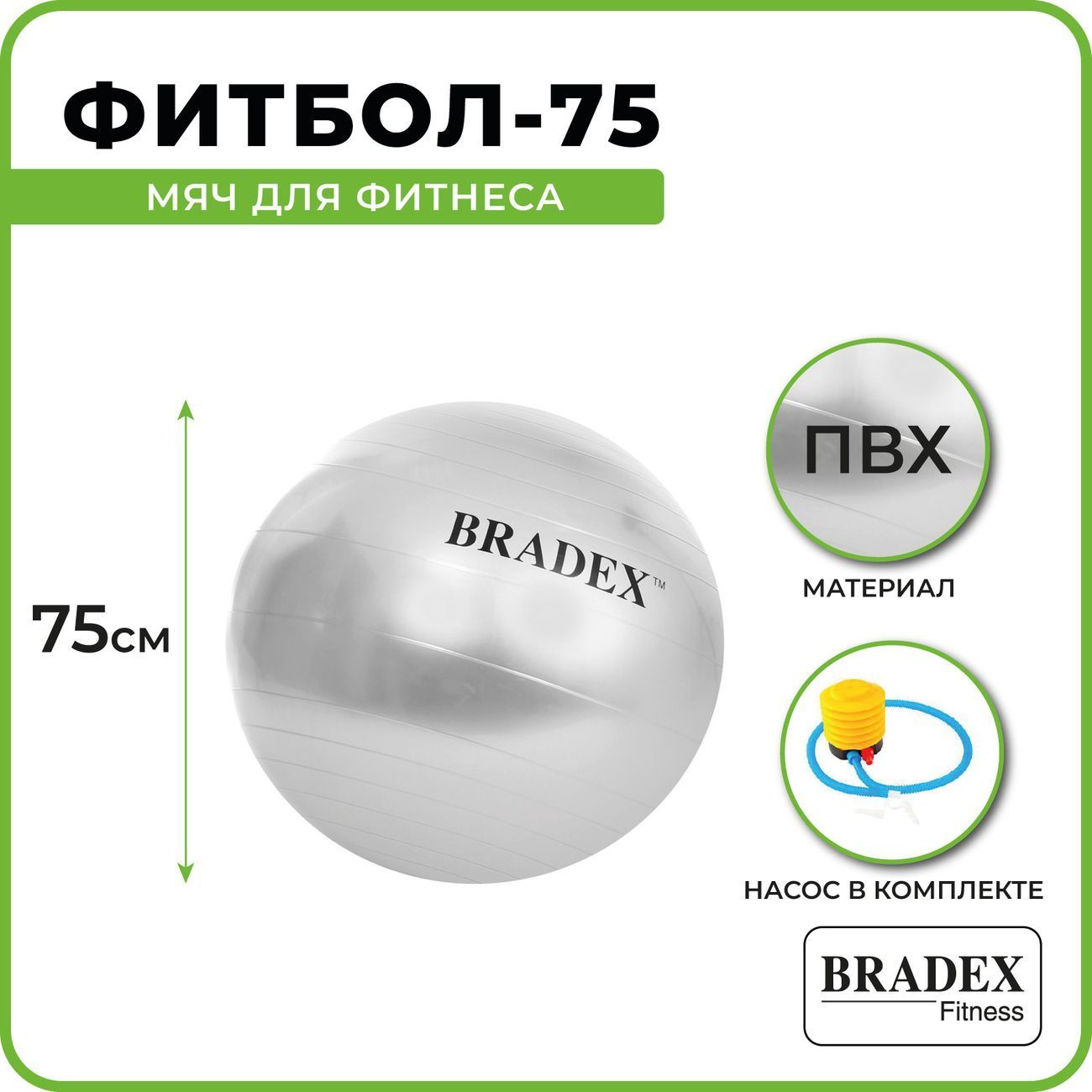 Вы можете купить Мяч для фитнеса Bradex SF 0187 Фитбол-75, с насосом в магазинах М.Видео по доступной цене. Мяч для фитнеса Bradex SF 0187 Фитбол-75, с насосом: подробное описание, фото и отзывы реальных покупателей, характеристики, возможность скачать инструкции и подобрать аксессуары.