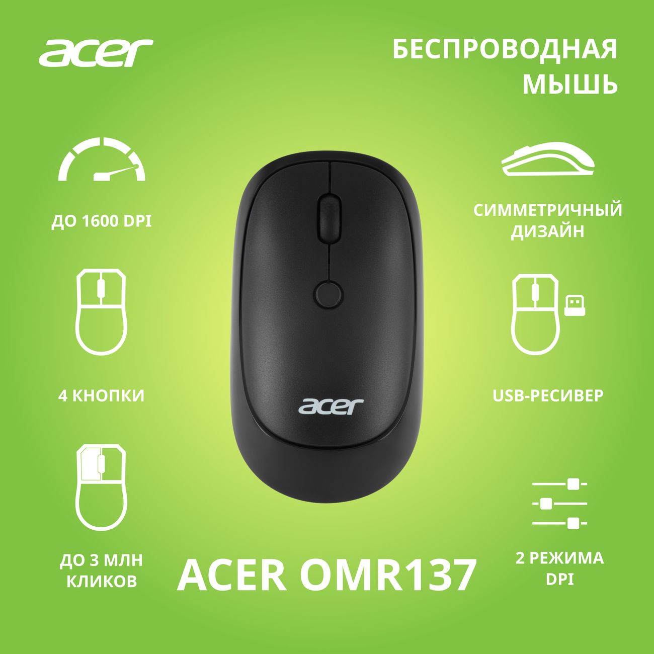 Беспроводная мышь Acer OMR137 ZL.MCEEE.01K поставляется с USB-приемником, обеспечивающим стабильную беспроводную связь на дистанции до 10 м. На корпусе мыши сделано матовое покрытие. В конструкции использован оптический светодиодный сенсор, отвечающий за высокую точность в процессе управления. Мышь работает без перебоев на разных поверхностях без неровностей. Четыре стандартные кнопки выполнены в симметричной форме, оптимальной для управления правой или левой рукой.