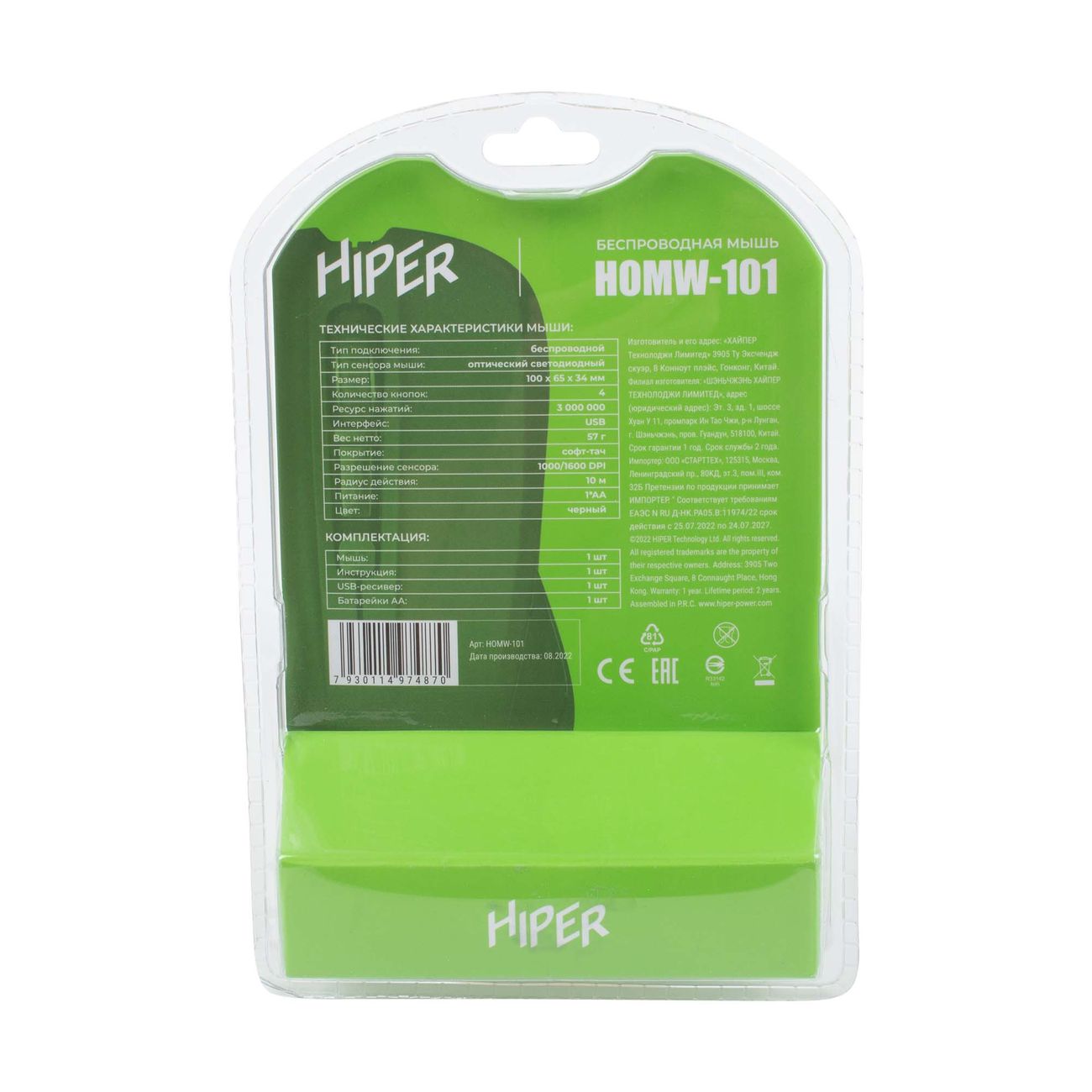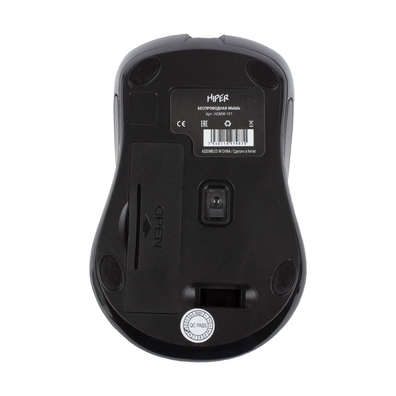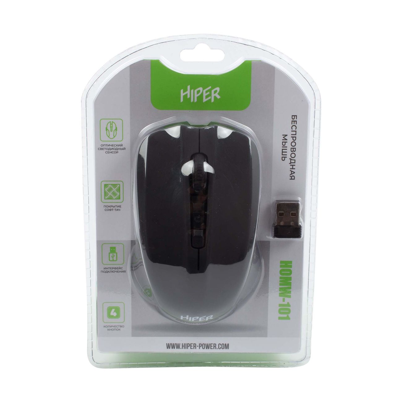 Беспроводная мышь Hiper HOMW-101 весом 57 г работает от батарейки АА в радиусе 10 м от компьютера, что обеспечивает свободу перемещения. Устройство с оптическим разрешением 1000-1600 т/д отличается симметричным дизайном, поэтому можно действовать правой или левой рукой.