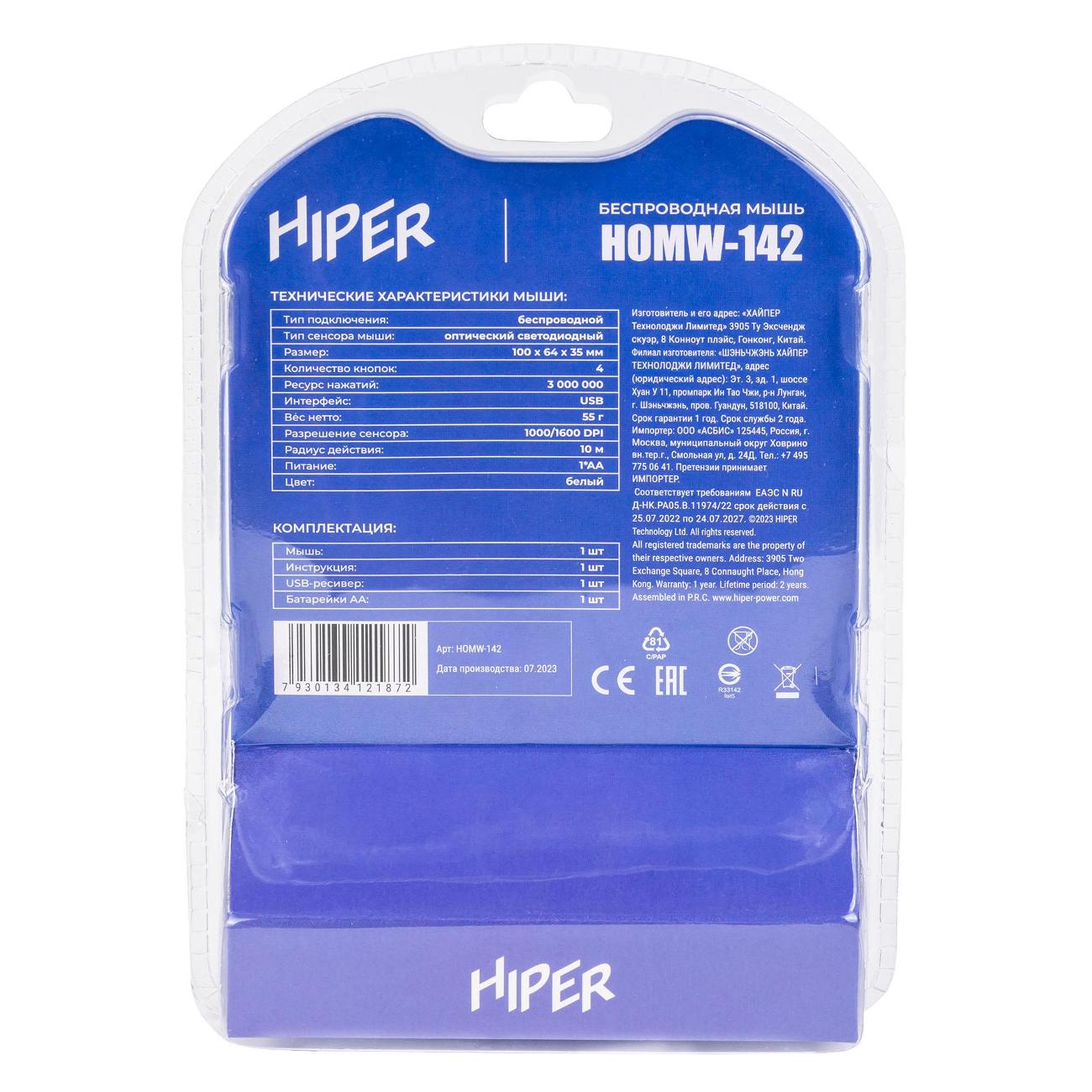 Вы можете купить Мышь беспроводная HIPER HOMW-142 в магазинах М.Видео по доступной цене. Мышь беспроводная HIPER HOMW-142: подробное описание, фото и отзывы реальных покупателей, характеристики, возможность скачать инструкции и подобрать аксессуары.