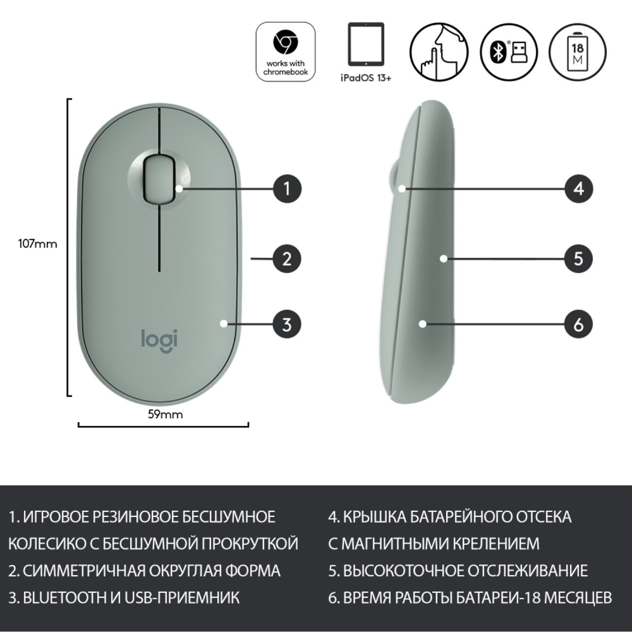 Плоскую беспроводную мышь Logitech M350 можно брать с собой в любые путешествия – она помещается даже в карман куртки, не говоря уже о сумке для компактного ноутбука. Её бесшумные клавиши и колёсико позволяют работать как за столиком в кафе, так за университетской партой или в офисе.