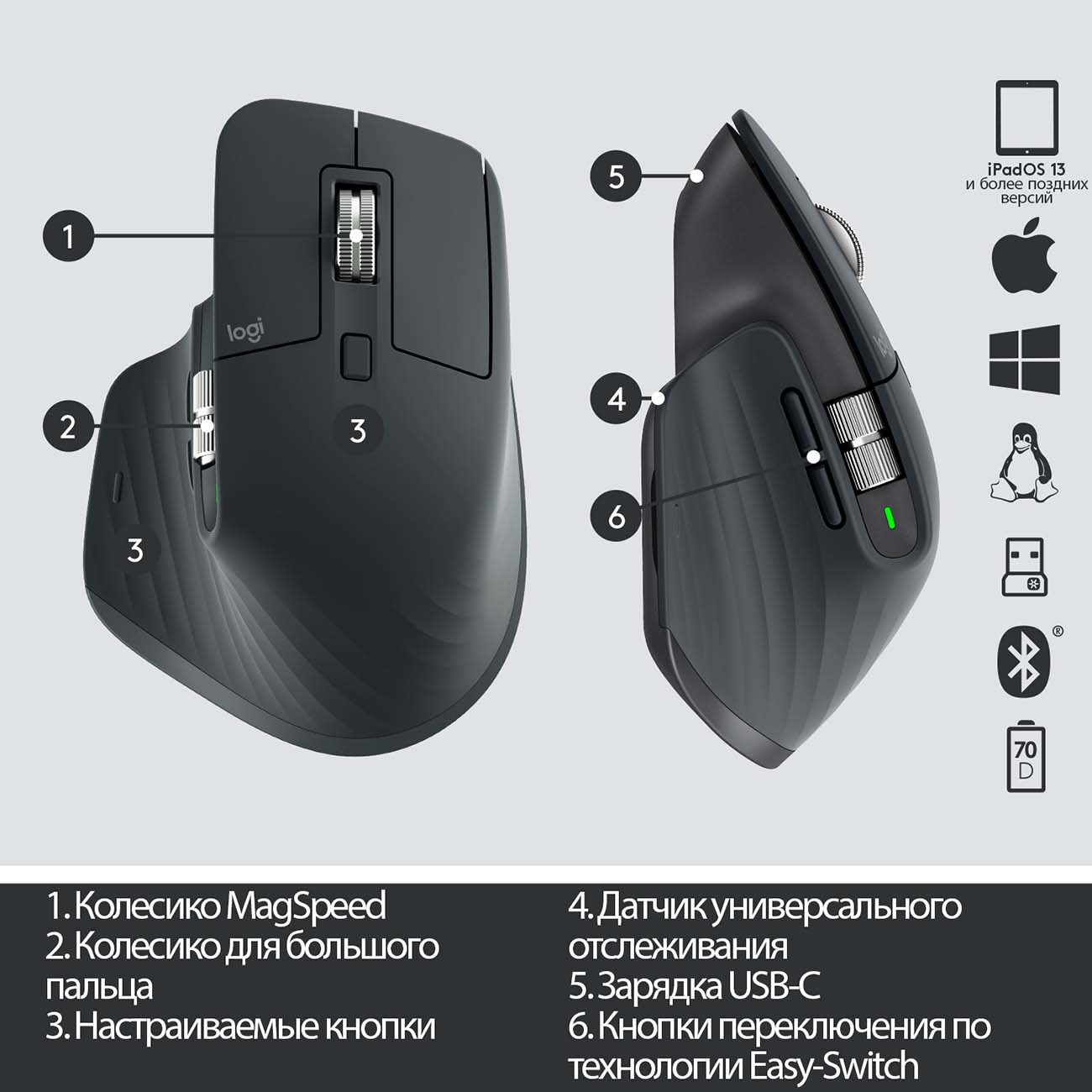 Беспроводная мышь Logitech MX Master 3 создана для настоящих профессионалов – программистов, дизайнеров, финансистов и представителей других специальностей. Необычная форма её корпуса позволяет расслаблять мышцы ладони во время долгой работы, сохраняя при этом возможность отдавать привычные команды быстро и просто.