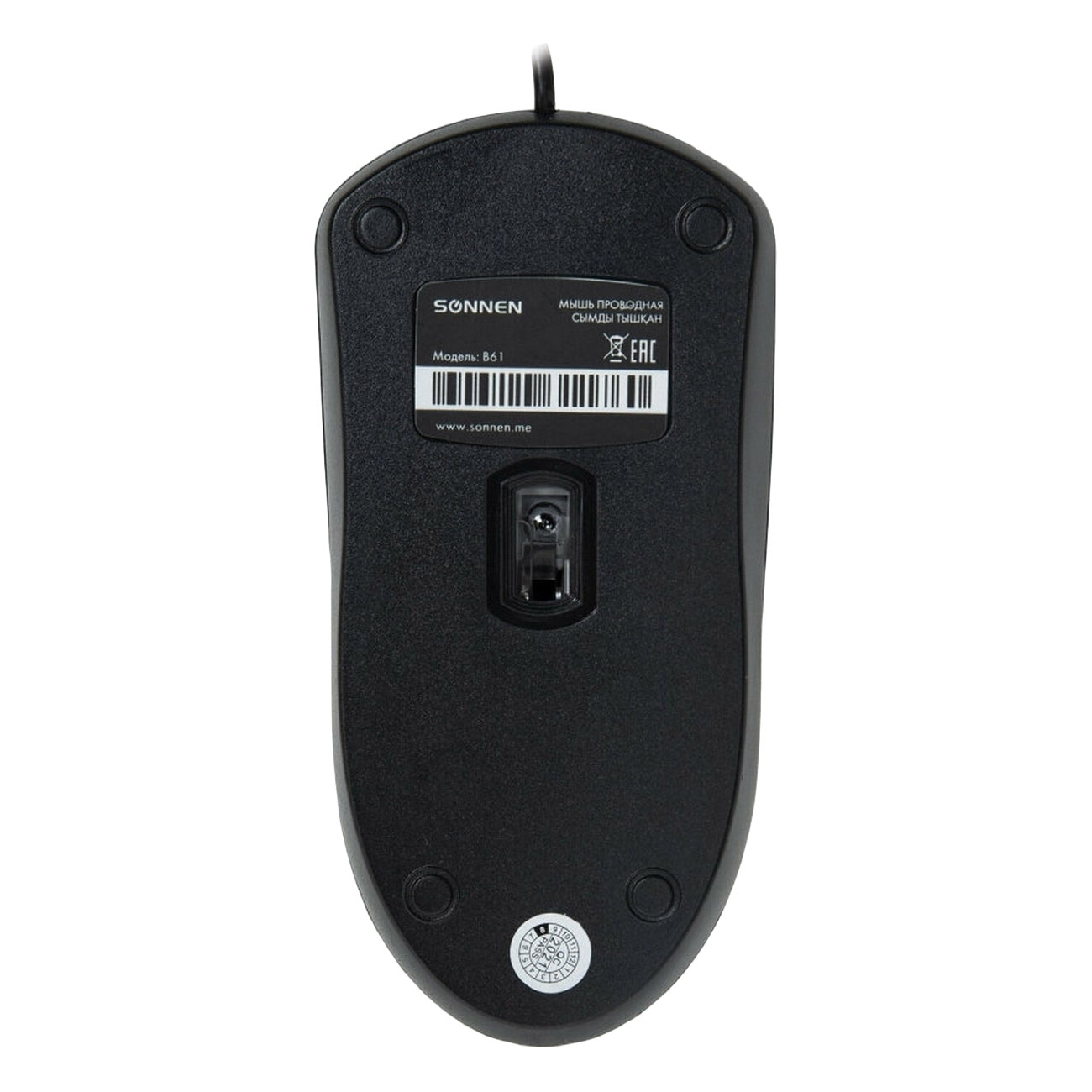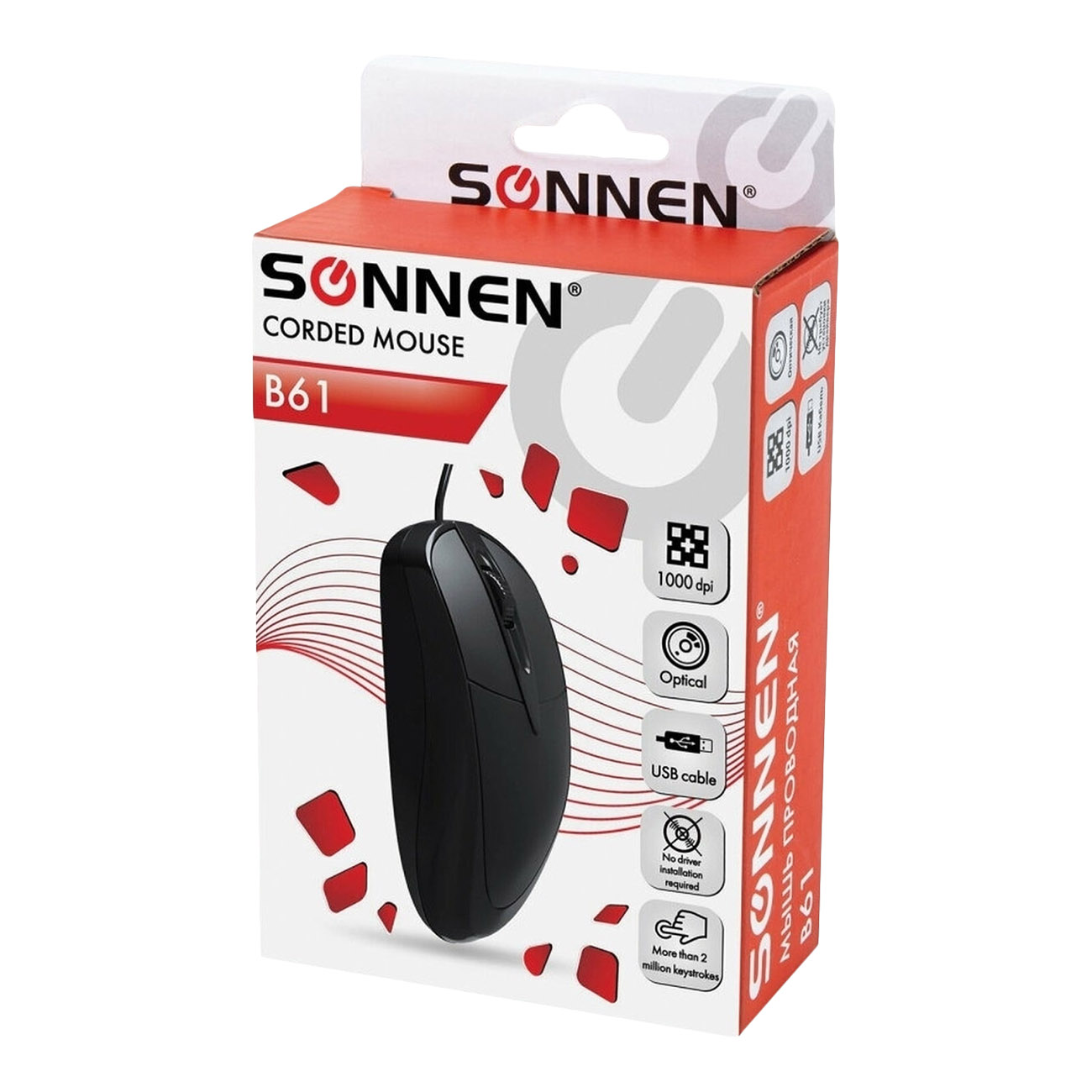 Компьютерная мышь Sonnen B61 — оптическая модель с высоким разрешением 1000 т/д, приемный блок которой подключается к ПК при помощи интерфейса USB 2.0. Эргономичная конструкция обладает симметричным дизайном. Для удобства есть нескользящие накладки. Благодаря им можно быстро и точность наводить курсор. Длина кабеля составляет 1,3 м. Корпус изготовлен из пластика, устойчивого к механическому воздействию. Из элементов управления есть две большие кнопки по бокам и колесико для скроллинга посередине. Вес мыши — 48 г.