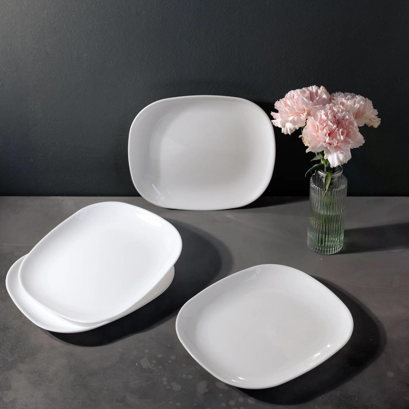 отличные тарелки. Очень понравились такой формы - именно не квадратные, а слегка прямоугольные. Микроволновкой проверены - не трескают. Некоторые пишут, что не могут снять наклейку. Всё проще, чем кажется, просто поставьте тарелки на 30 секунд или 1 минуту (если все шесть тарелок за раз) в микроволновку, они легко удаляются. (На видео просто в одной руке телефон держу и ногтей нет, поэтому долго копаюсь🙂). Потом можно немного содой потереть
