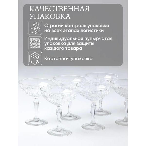 Бокал выполнен из прозрачного стекла, что позволяет насладиться цветом и ароматом шампанского. Он имеет объем 250 мл и диаметр 11 см, а высота составляет 14 см. Благодаря этому, можно наслаждаться напитком в полной мере, не проливая его на стол.