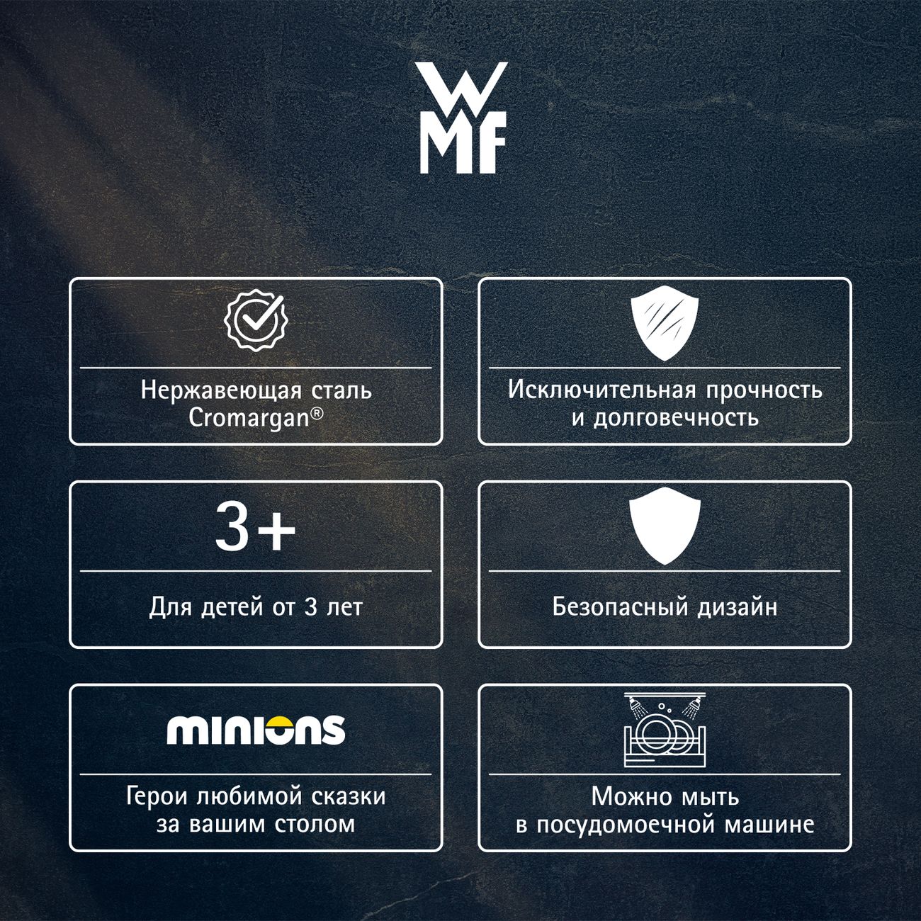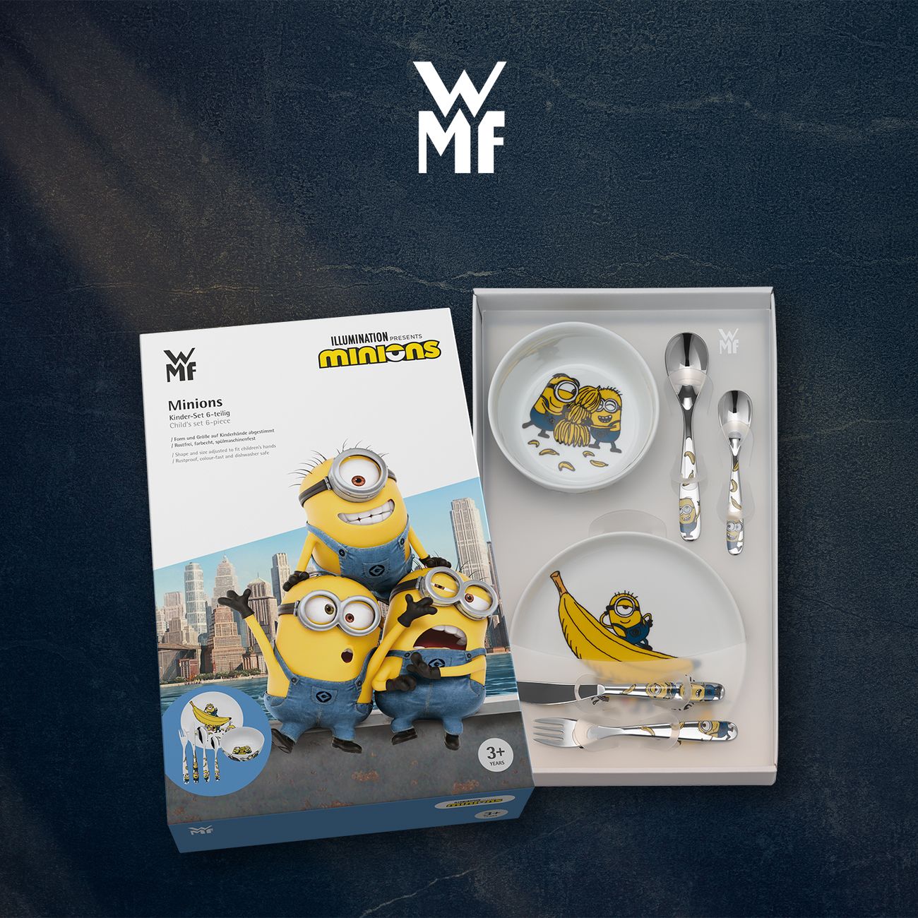 Вы можете купить Набор детской посуды WMF MINIONS, 6 предметов (1286079964) в магазинах М.Видео по доступной цене. Набор детской посуды WMF MINIONS, 6 предметов (1286079964): подробное описание, фото и отзывы реальных покупателей, характеристики, возможность скачать инструкции и подобрать аксессуары.