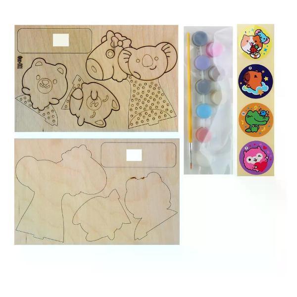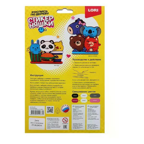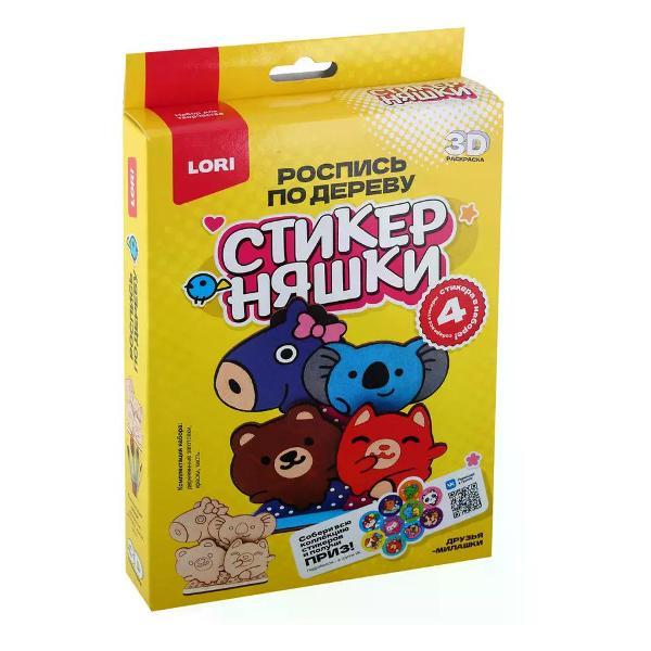 Набор для росписи, Стикерняшки, 3D-раскраска Друзья-милашки, дерево, Lori, Фно-001. Набор росписи по дереву 3D-раскраска в виде милых персанажей.В набор входят:•деревянная основа,•краски 9 цветов,•стикеры - 4 шт.,•кисть. Страна производства: Россия. Бренд: Lori. Категория продавца: Наборы для поделок. Возрастная группа: 5+. Детский набор для росписи позволяет ребенку раскрыть творческий потенциал и создавать яркие произведения искусства с удовольствием. Такой комплект содержит всё необходимое для увлекательного занятия, которое развивает фантазию и мелкую моторику. Предмет идеально подходит для домашних занятий, праздничных мероприятий или организации досуга во время отдыха. Качественное исполнение гарантирует безопасность использования и дарует часы творчества без ограничений. Приобретение такого набора станет отличным подарком для молодого художника.