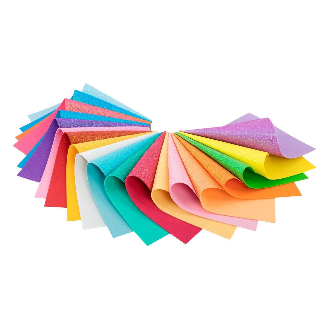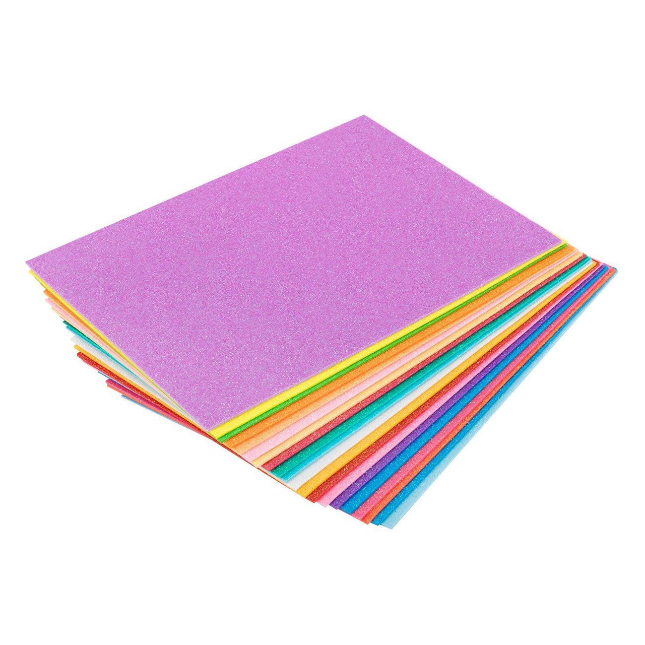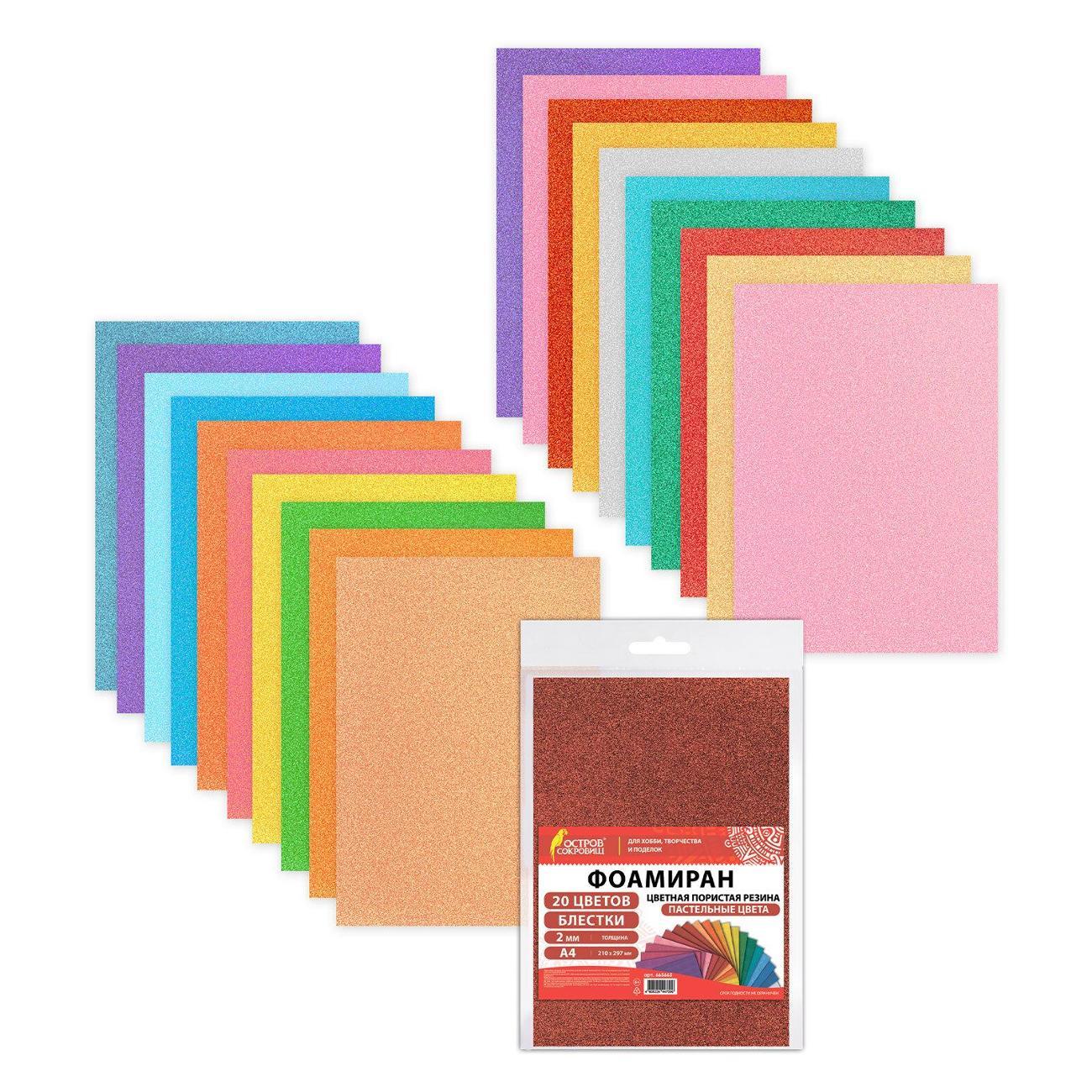 20 пастельных цветов фоамирана (пористой резины) ОСТРОВ СОКРОВИЩ с блестками формата А4 позволят создать уникальную и эффектную поделку! Толщина каждого листа – 2 мм, размер листа – 29,7х21 см.