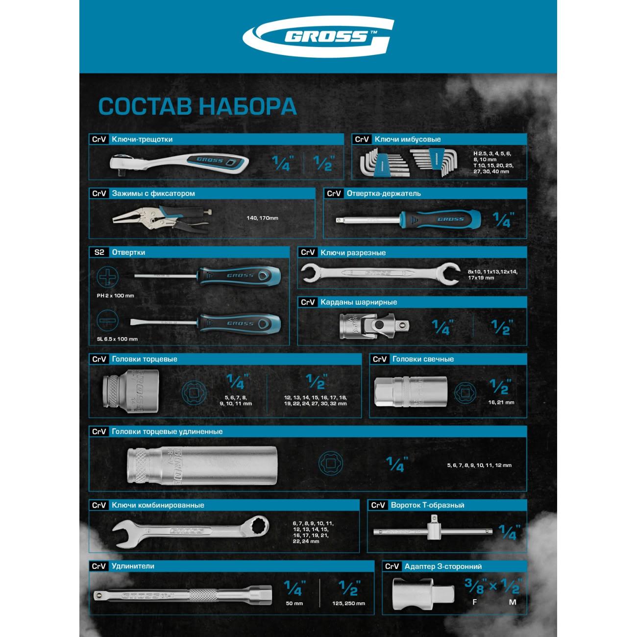 Смотреть все Наборы инструментов для автомобиля GROSS