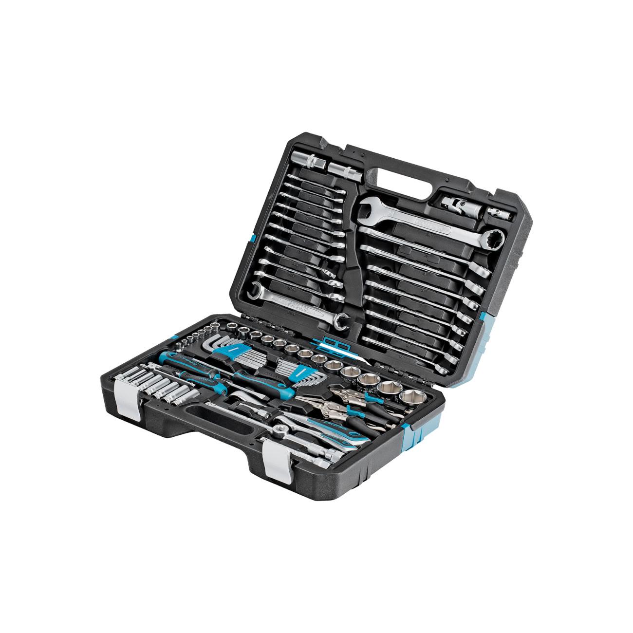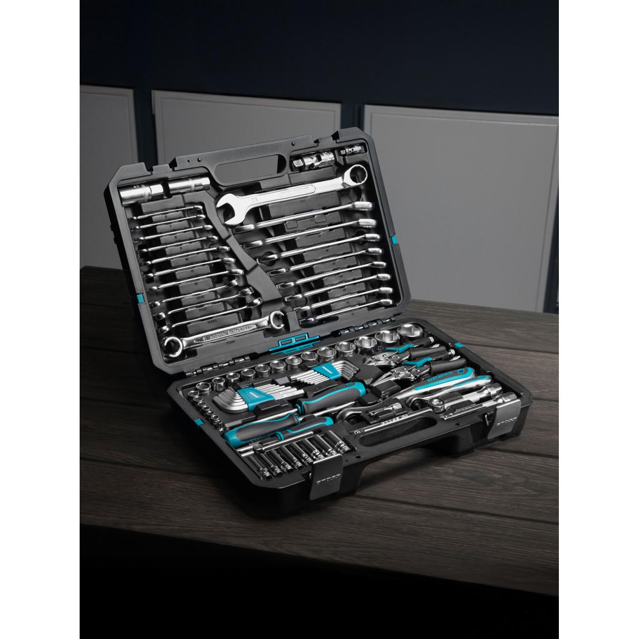 Покупал набор, чтобы в гараже все было под рукой. 78 предметов это впечатляет, и головки, и ключи, и отвертки, и плоскогубцы - чего только нет! Кейс удобный, все сделано добротно.