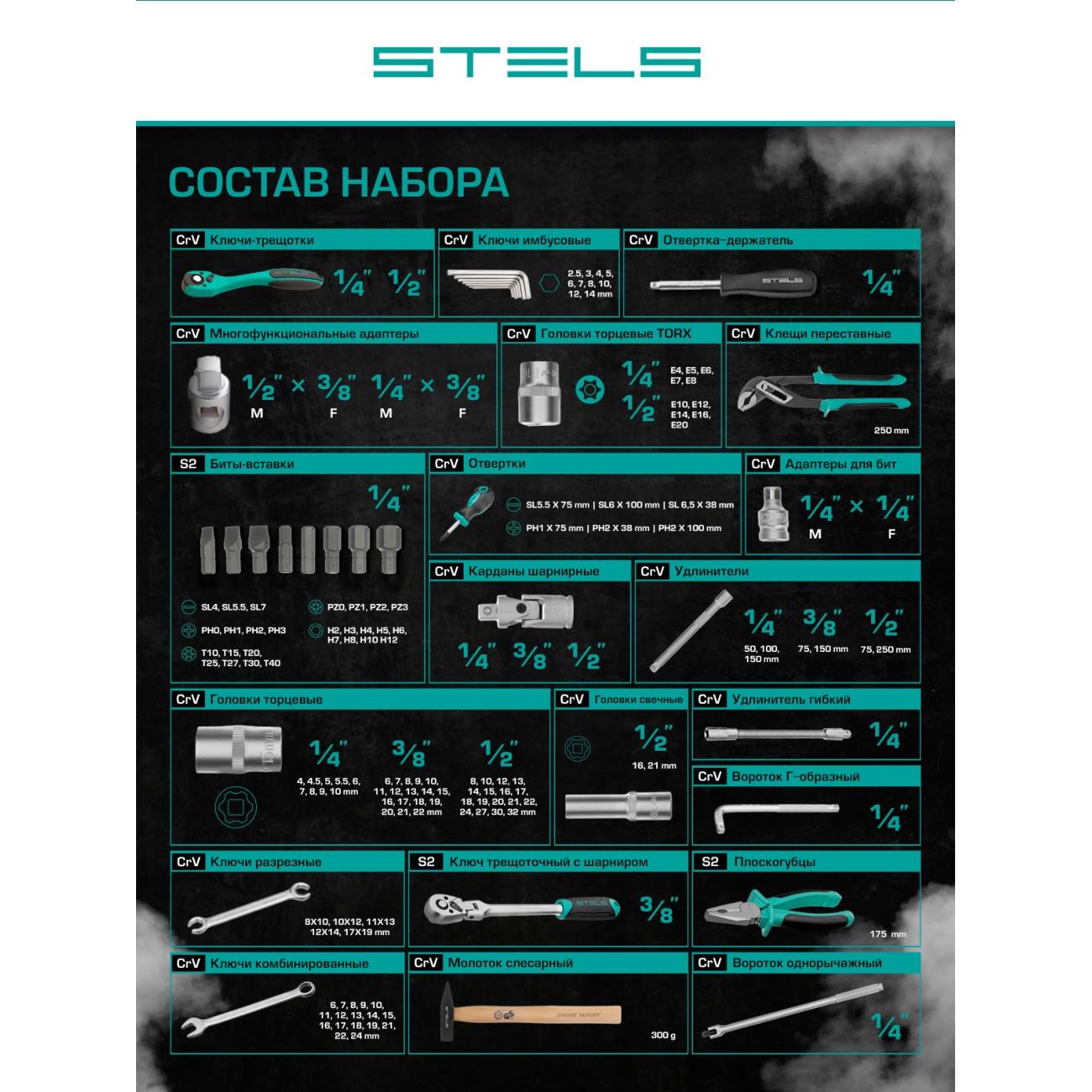 Вы можете купить Набор инструментов Stels 142 пр. (14107) в магазинах М.Видео по доступной цене. Набор инструментов Stels 142 пр. (14107): подробное описание, фото и отзывы реальных покупателей, характеристики, возможность скачать инструкции и подобрать аксессуары.