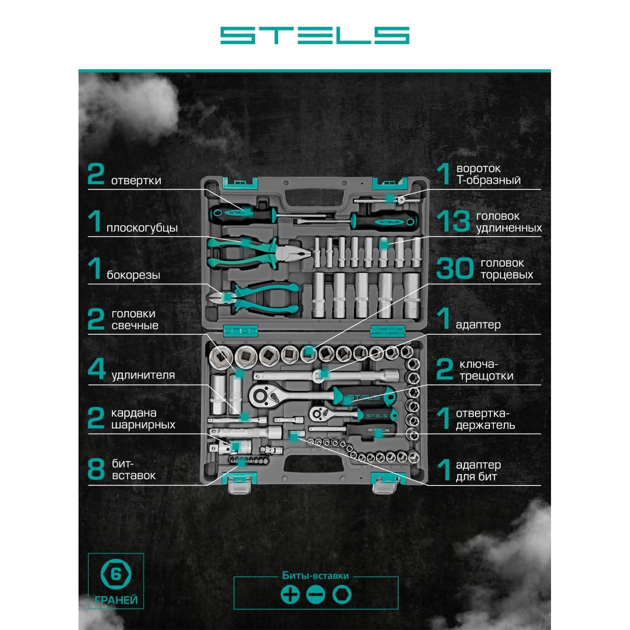 Вы можете купить Набор инструментов STELS 69 пр. (14108) в магазинах М.Видео по доступной цене. Набор инструментов STELS 69 пр. (14108): подробное описание, фото и отзывы реальных покупателей, характеристики, возможность скачать инструкции и подобрать аксессуары.